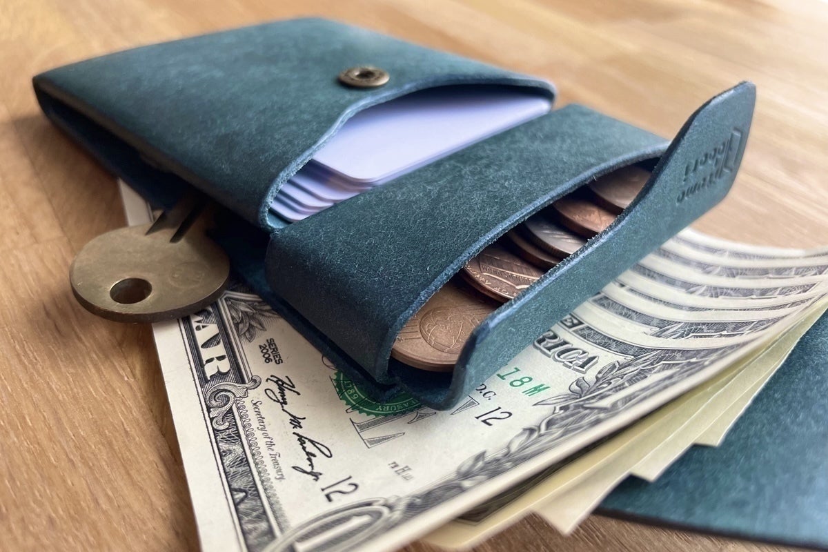 スリムな見た目にもかかわらず、カード8枚、小銭16枚、お札15枚、そしてカギが1本が収納可能。