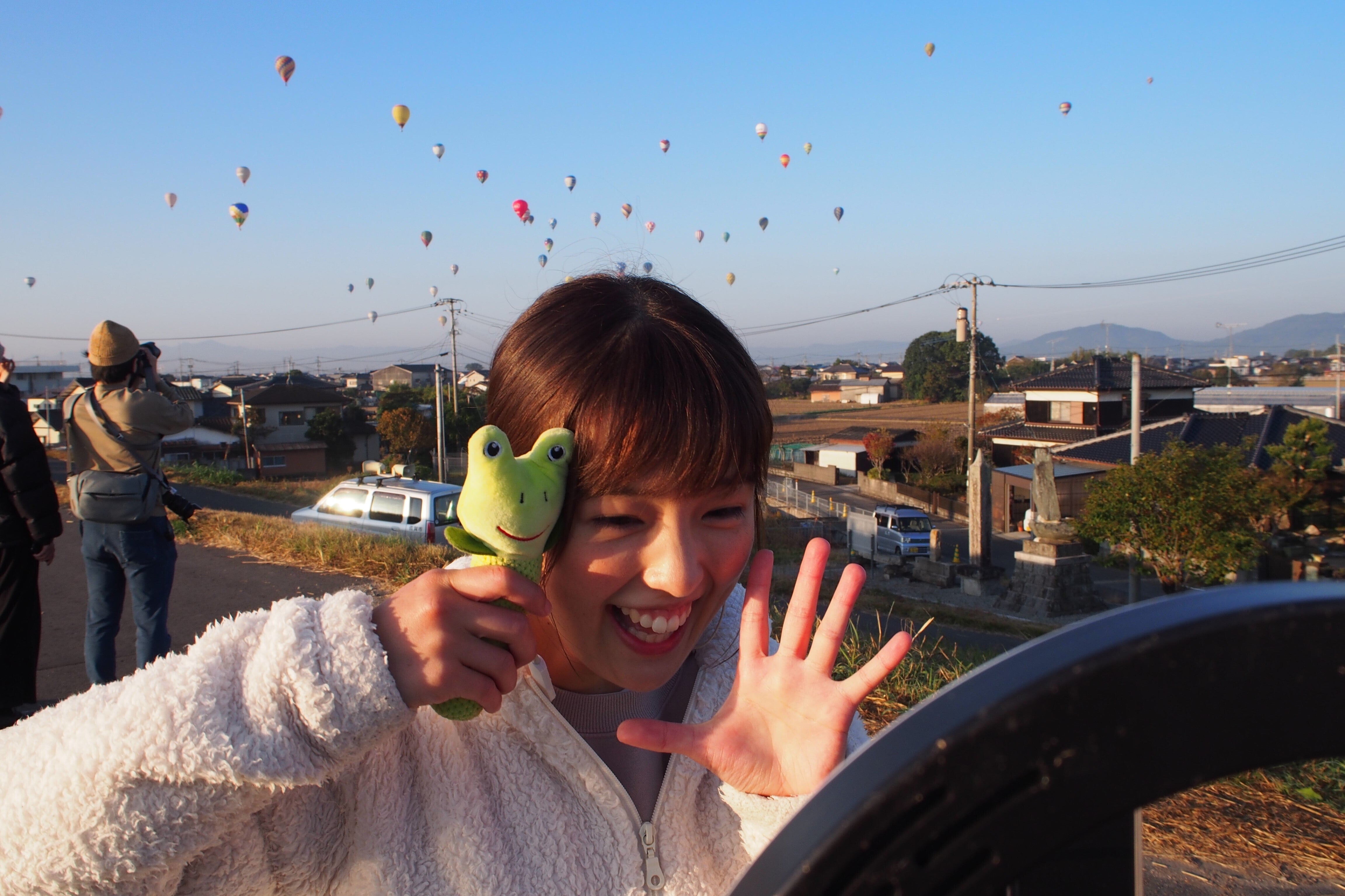 ↑BIGOLIVEにてスマホの向こうにいるファンの方々とリアルタイムで佐賀バルーンを味わう。