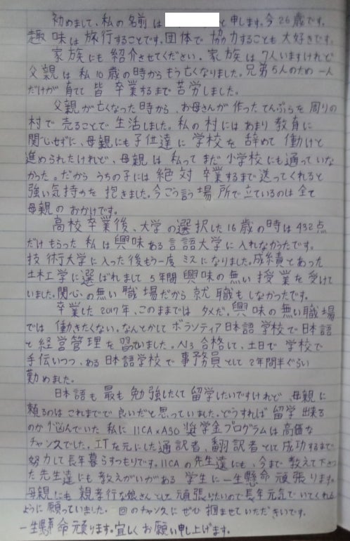 困難な状況下でも、必死に勉強を続けてきた様子が伝わってきて、実行委員一同、涙なしには書類審査を終えることができませんでした。