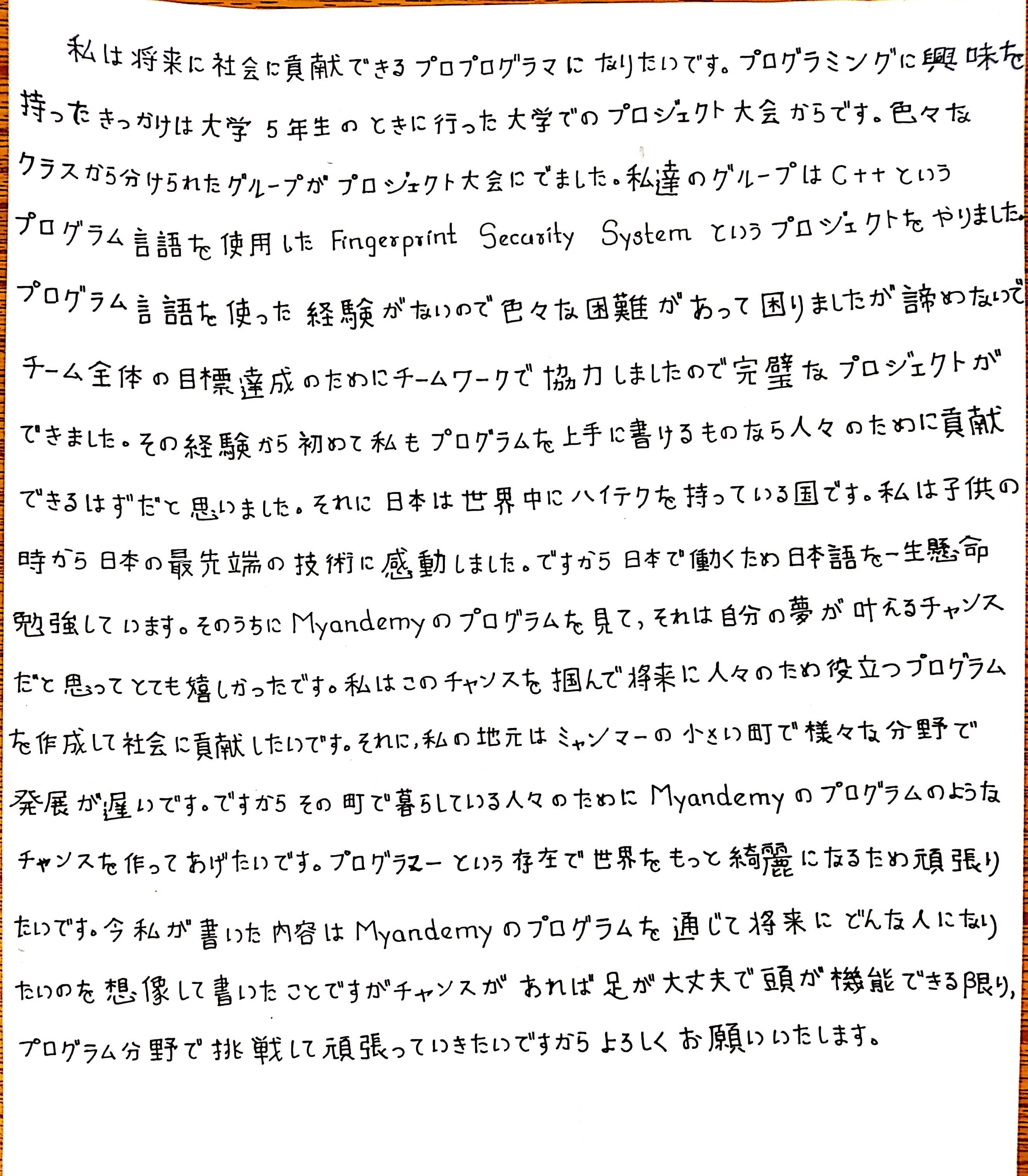 そう思い、今回、特別に作文を書いてくれた本人に許可を取りましたので、一部公開させていただきます。