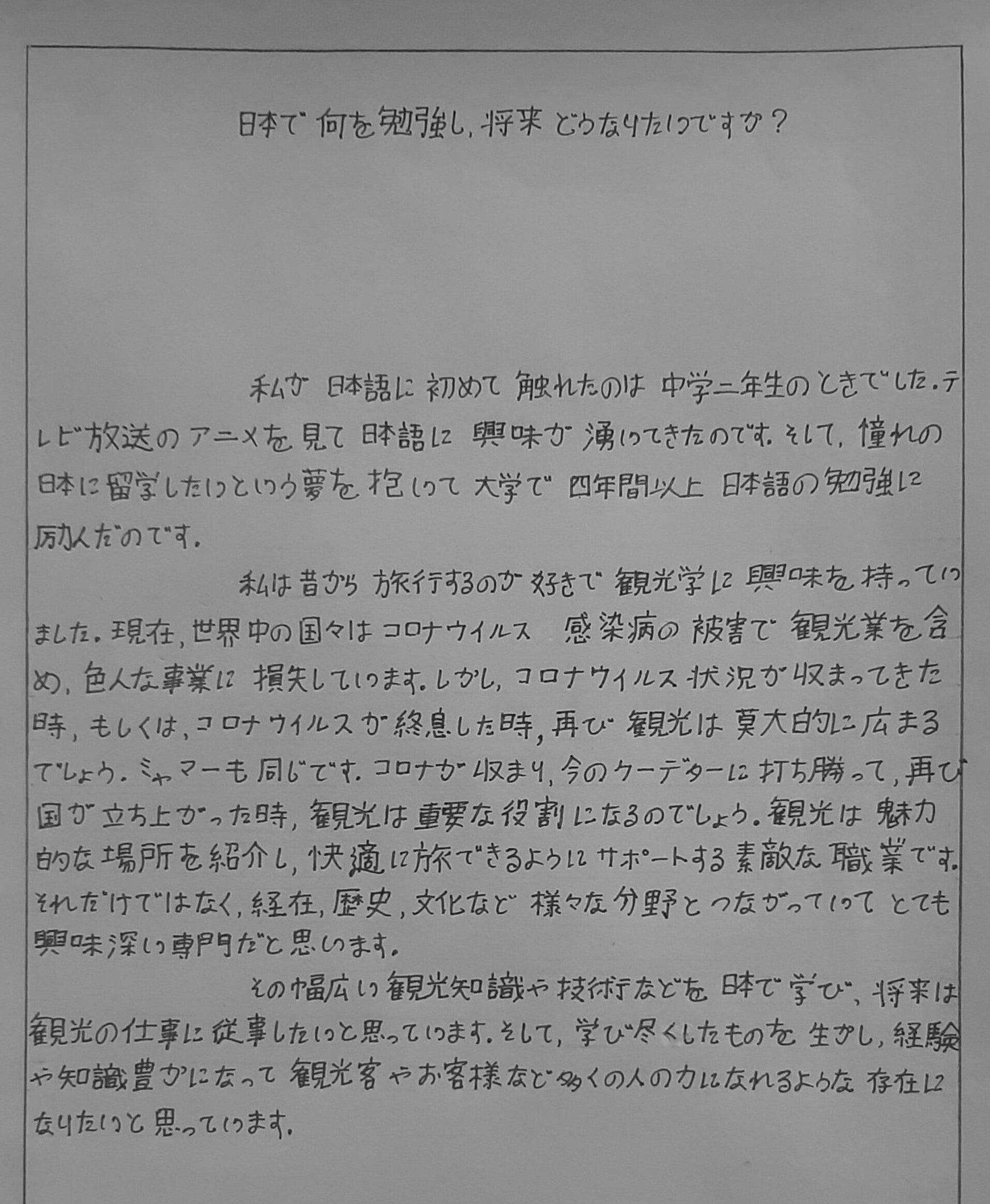 『なぜ日本へ行きたいのですか?日本で何を勉強し、将来どうなりたいですか?』