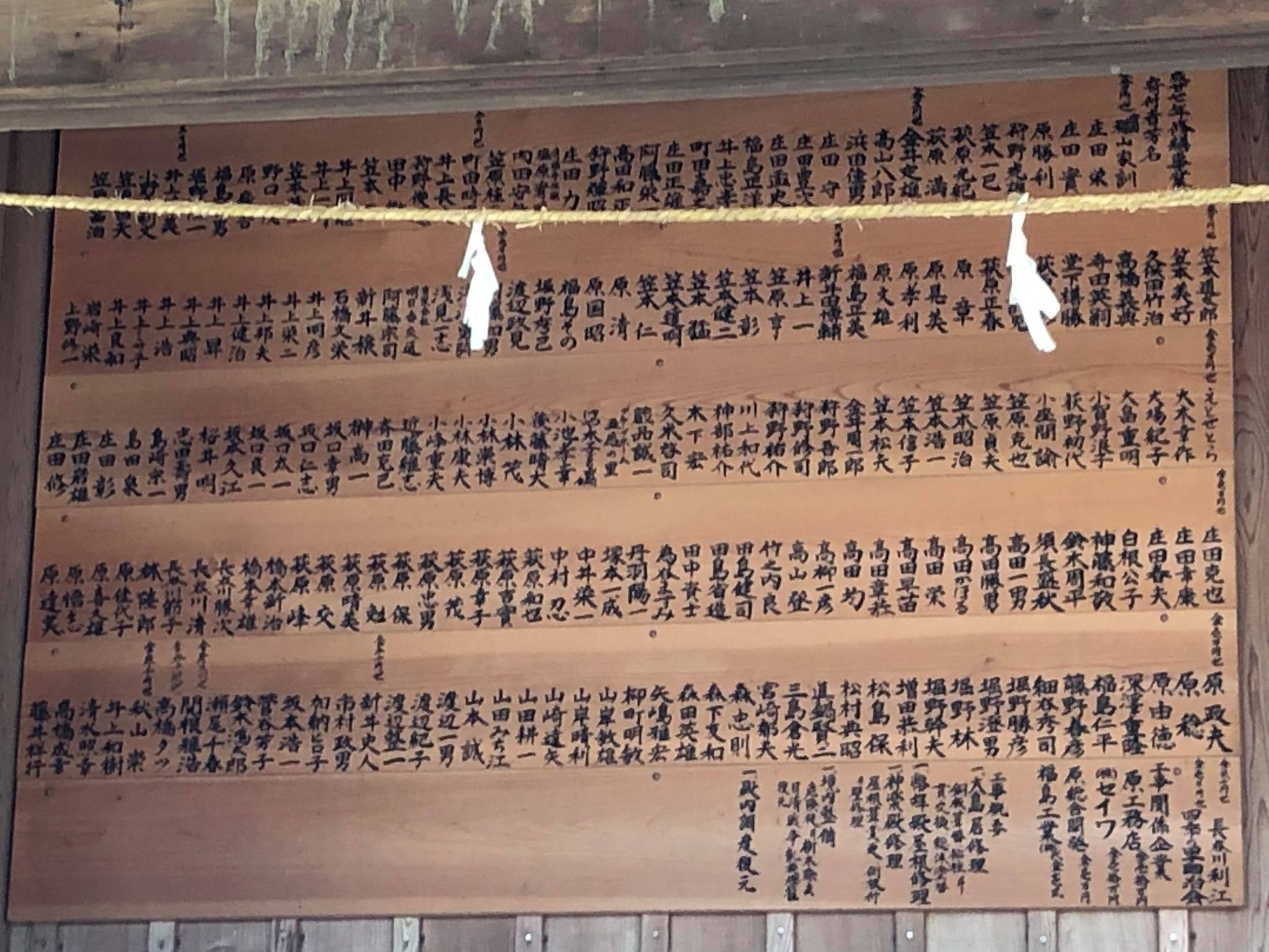 六年前に鳥居と神楽殿を修復しましたが、拝殿が雨漏りしていたのに気づきませんでした。とはいえ前回の寄付から六年では氏子からの寄付を集めるのが難しく、修理の積み立てとしてとっておいた平成二十五年の寄付の残金では到底今回の修理には足りず、皆様にひろくご支援を仰ぐことになりました。よろしくお願い申し上げます。
