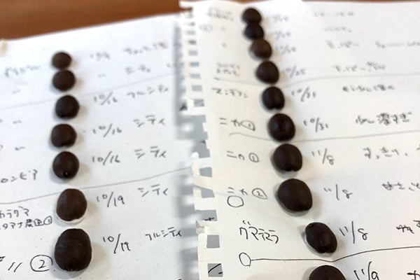 ネットの記事や、先輩の焙煎士さんのお話を参考にしながら、ガスコンロの火力、手網を振る高さや速度、焙煎時間などを細かくノートにとって研究しました。