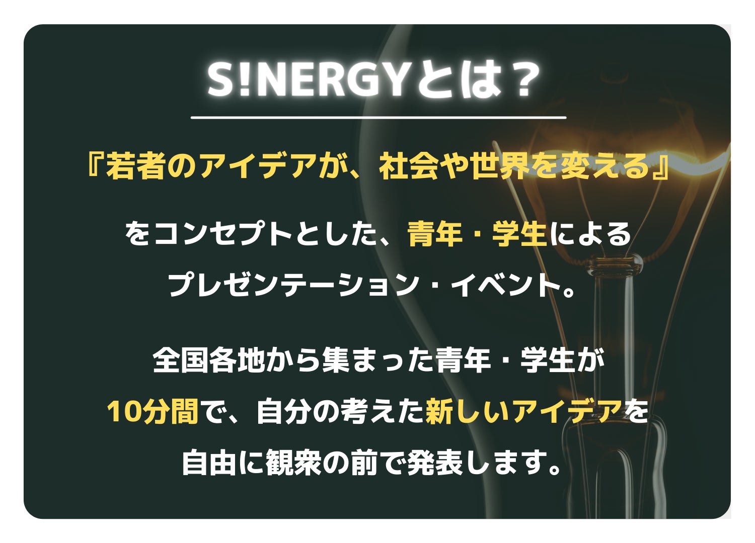 私たちはS!NERGYを日本一のプレゼンイベントにする挑戦をしています!