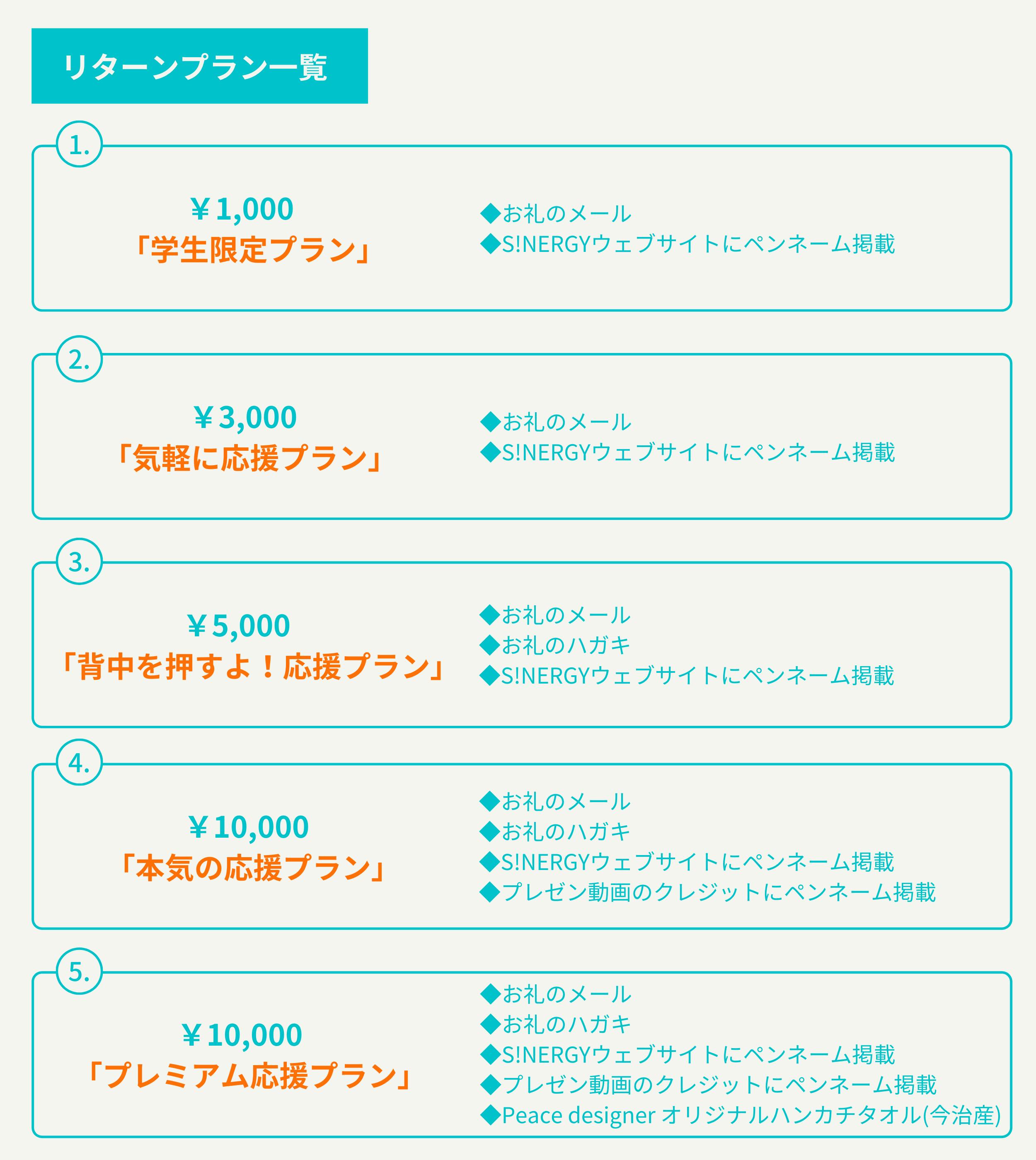 皆様からのご支援金は、S!NERGY実行委員会がプレゼンターを支援するために使用する活動資金として使われ、プレゼンターのアイディア実現を助け、社会を良くする活動へと役立てられます。
