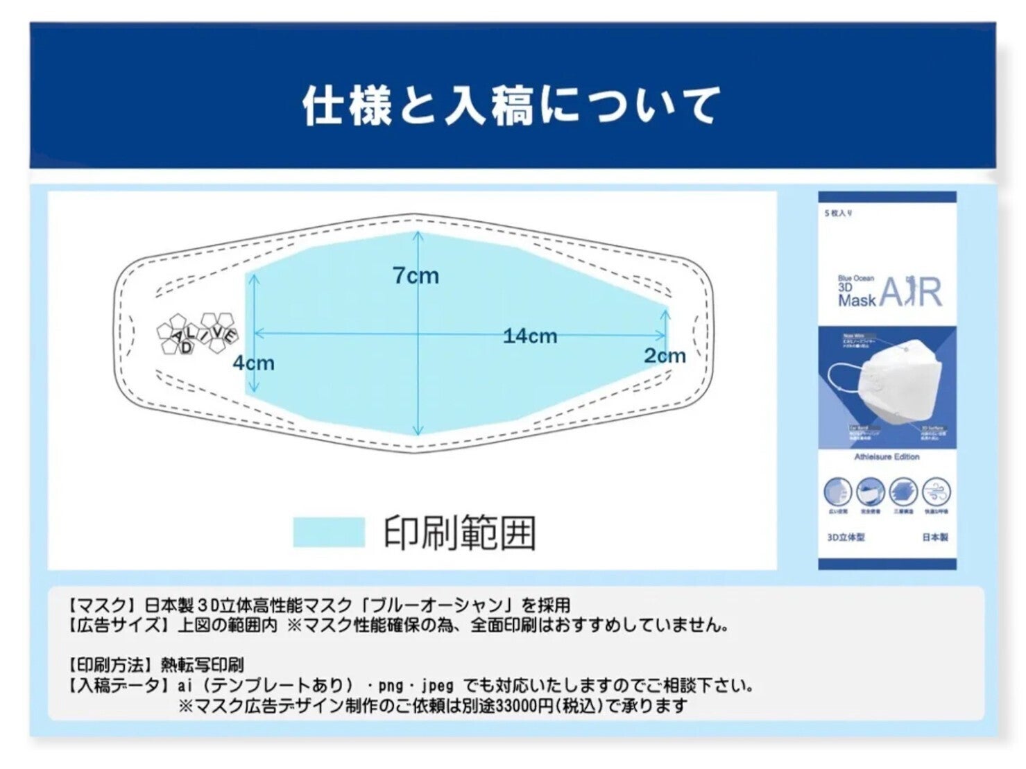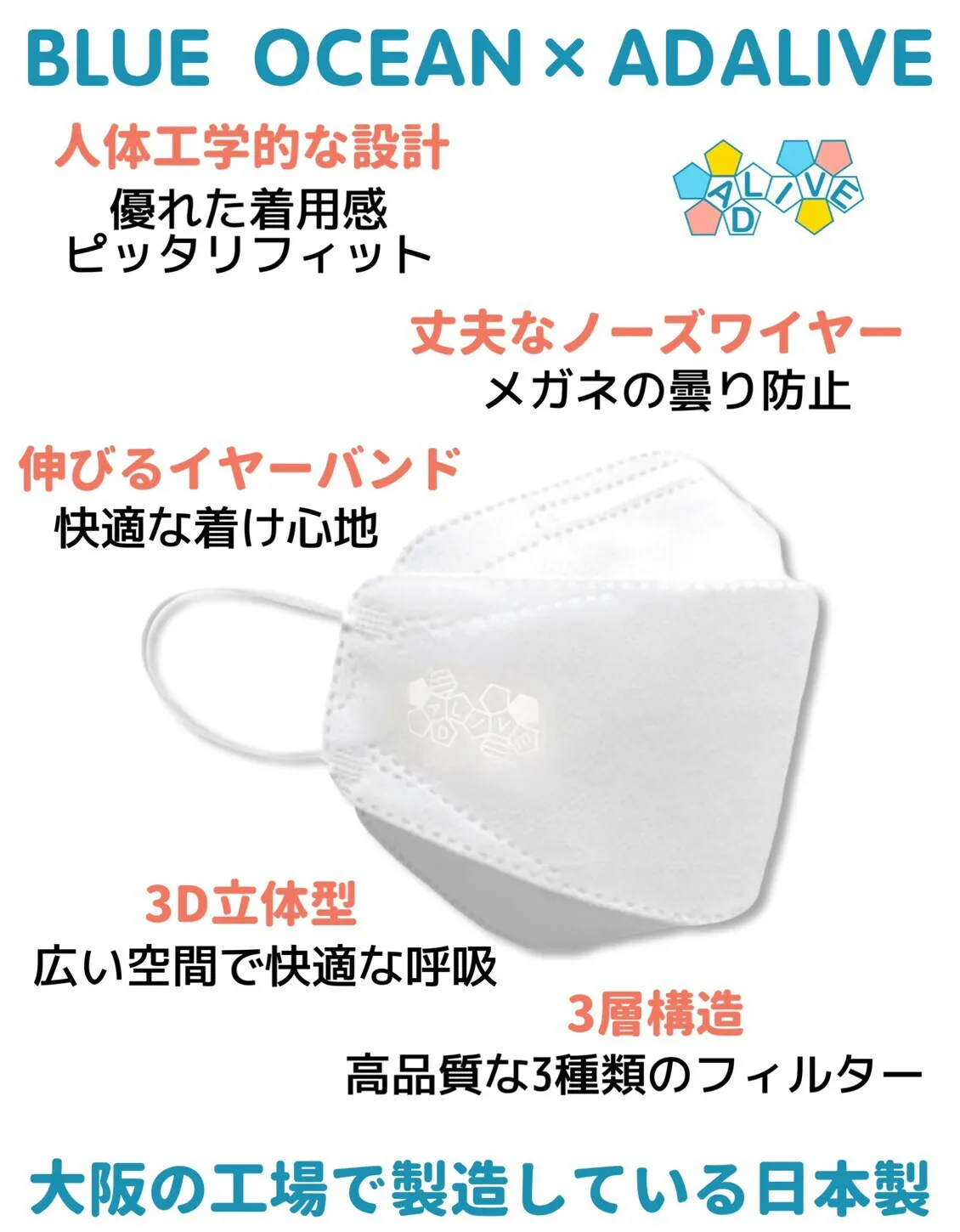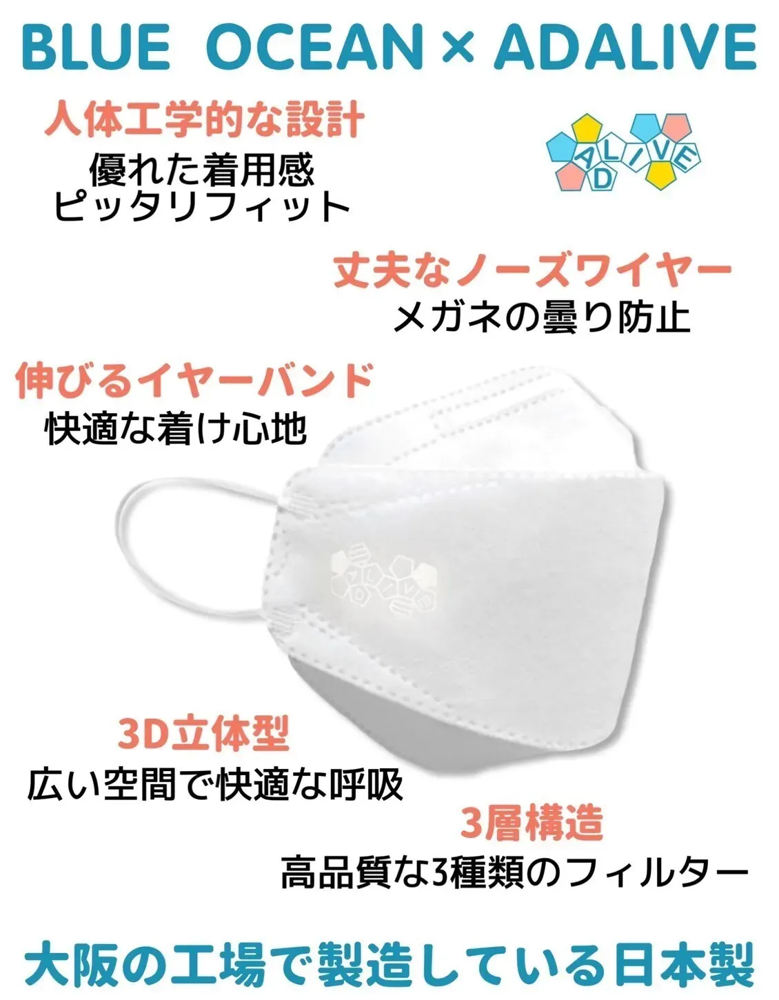 ADALIVEロゴ入り高品質マスクを5枚お届けします。(無制限)