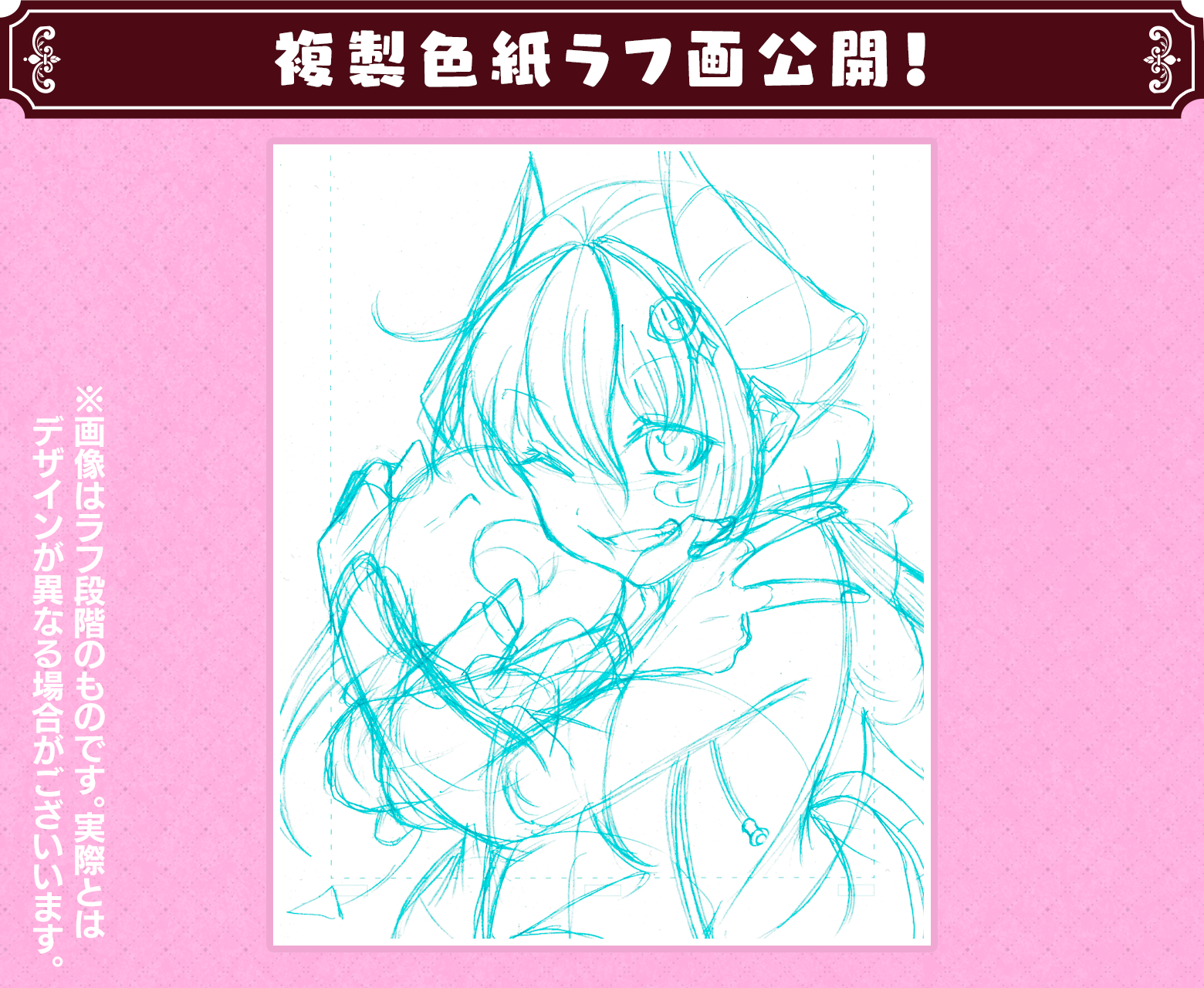 ┗モノクロ仕上げの色紙です。宛名とお好きなキャラクター(1名)とシチュエーションをご支援の際に必ず「備考欄」へ明記していただきます。服装や表情のご指定も受け付けますが、事務局判断によりご希望に添えない場合もございます。