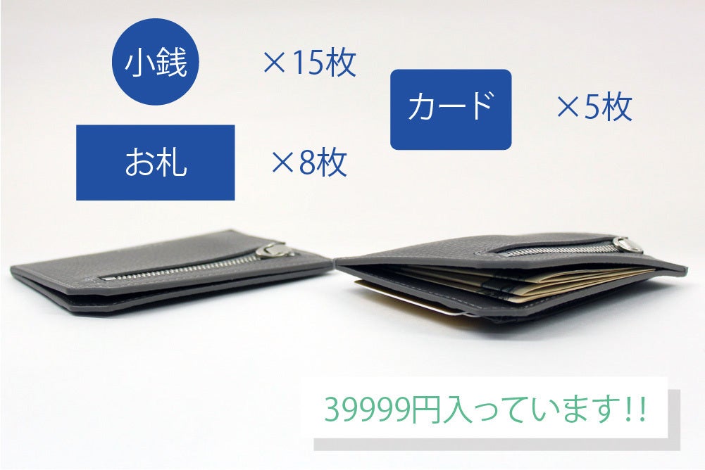 このスマートウォレットひとつを持って出かけられるように、お札・小銭・カードがすべて入るスペックになっています。