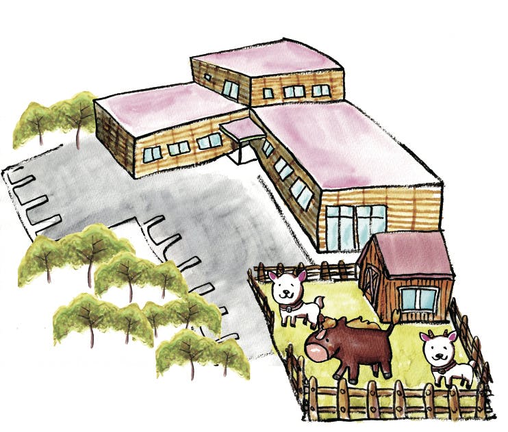 ほたるミニ牧場では、高齢者と動物たちが触れ合うことはもちろん、地域の方たちも動物の見学に訪れて頂ける場所を目指します。動物の見学を目的に介護施設を訪れる。▶ そのことをキッカケとして高齢者の介護や認知症について考える。そんな場所にしていきたいと考えています。