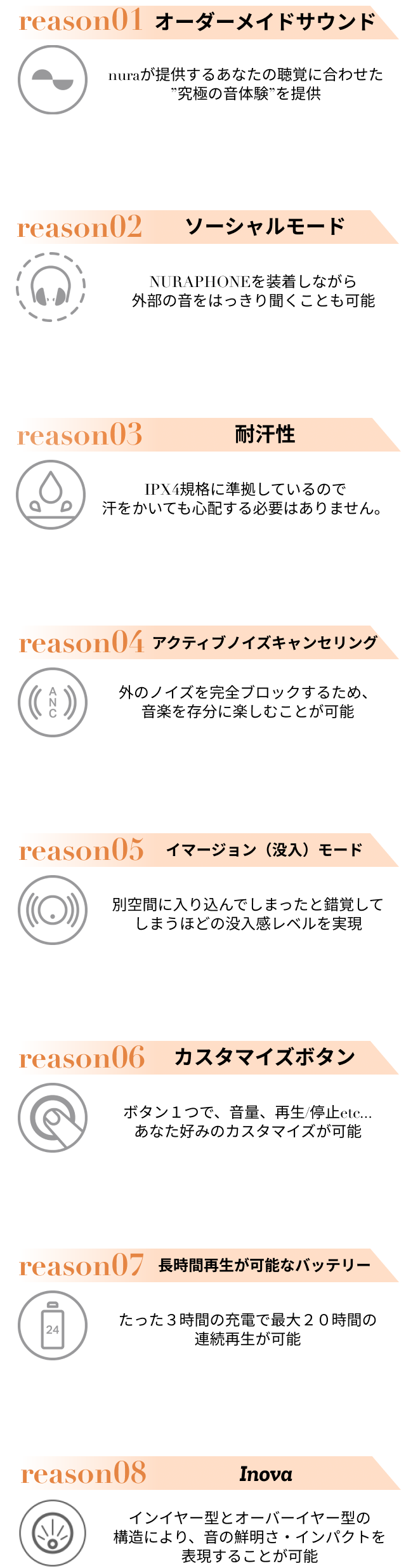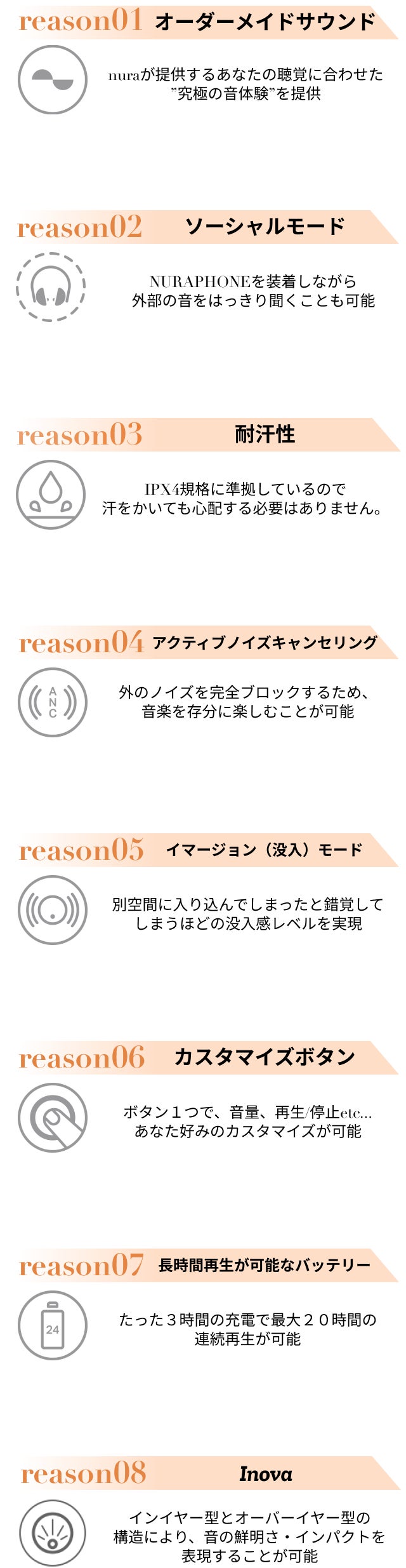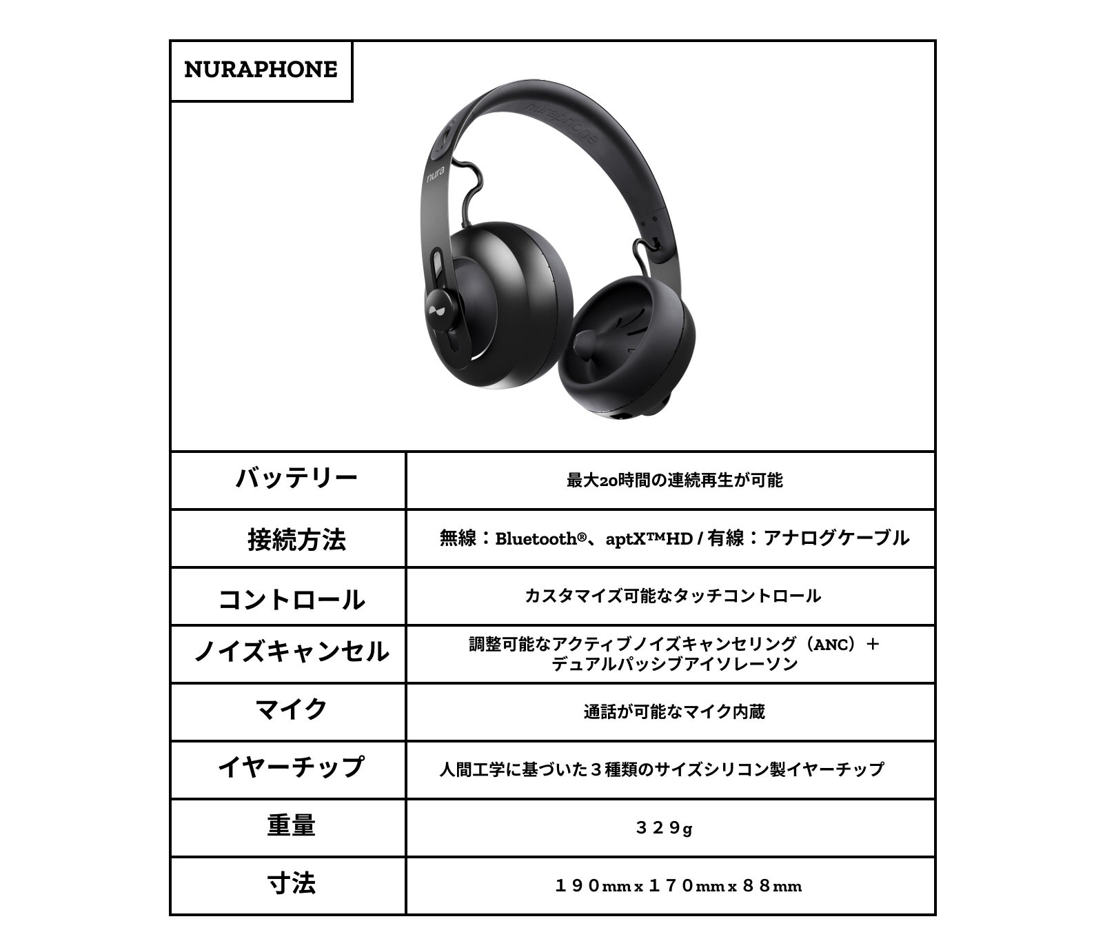 近年、テクノロジーの発展により、“好きな音楽を聴くこと”は、指先一つで操作できるようになりました。『そんな時代だからこそ、もっと音楽が奏でる繊細な“音”に聴き、楽しんで欲しい』と、nuraが開発した商品が“自分専用のオーダーメイドサウンド”を自動で作り出すヘッドフォンのNURAPHONEです。