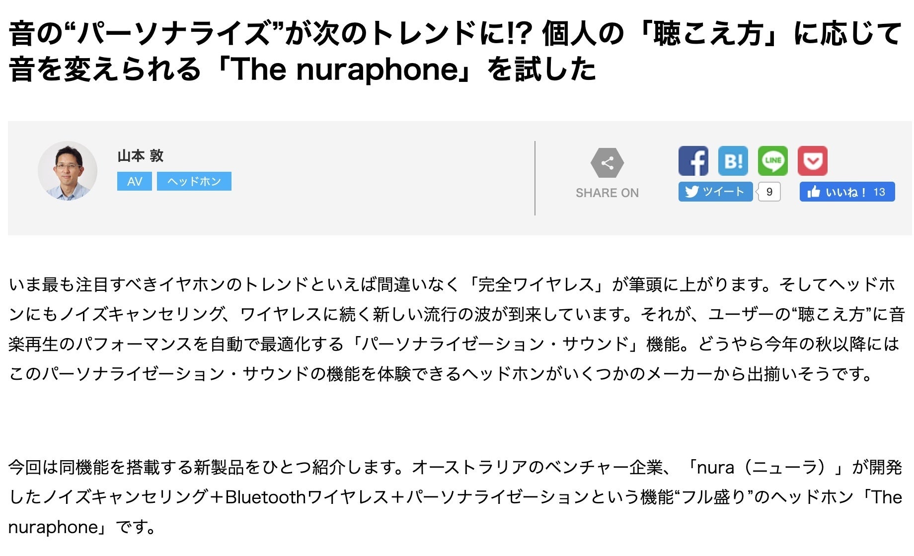 excite:【独自構造】イヤホン+ヘッドホンを採用したイヤホン「nuraphone」をレビュー