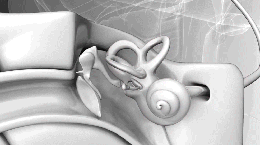 NURAPHONEから放出された音は内耳を振動させ、内耳はそれに応じて小さな音を出します。これが音響放出(OAE)です。この音は入った音の約1万分の1の大きさで、非常に小さく繊細な音です。
