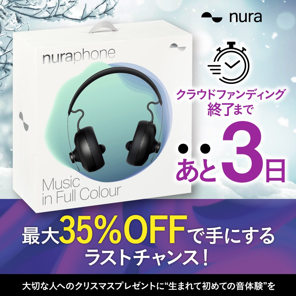 みなさんこんばんは!Taylorです。昨日、最先端テクノロジーが搭載されているNURAPHONE×NURABUDSのクラウドファンディングが終了し、なんと総額6,446,538円ものご支援が集まりました!みなさんのおかげで、当プロジェクトの目標額を大幅に塗り替えたことをnura team一同本当に嬉しく思っております。nura teamを代表し心より感謝の気持ちを述べたいと思います。本当にありがとうございました!さて、今現在NURAPHONEとNURABUDSは、日本全国に配送業者と密に連携をとりながら、準備しております!“クリスマス”までにみなさんのお手元に届くよう手配しておりますので、ぜひ楽しみにお待ちくださいませ。沢山の方々から多くの期待を背負ったこのnura製品は、今回行われたクラウドファンディングをきっかけに、これからも日本のみなさまに“生まれて初めての音体験”と感動していただけるような製品をお届けし続けられるよう邁進していく所存でございますので、今後ともどうぞ宜しくお願い致します!改めまして、この度はご支援頂き本当にありがとうございました!それでは!TaylorFull Color Sound Support The nura Team