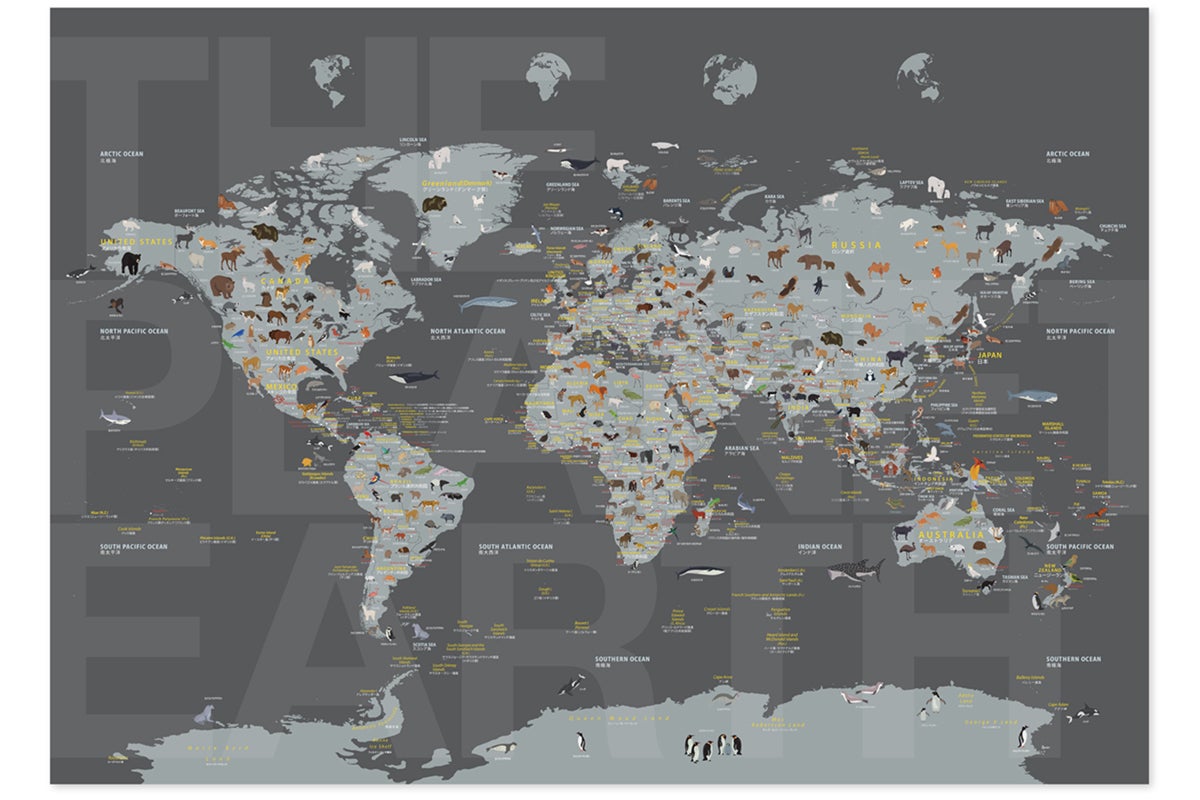 『どうぶつせかいちず』と『インテリアのための世界地図』2種類同時に先行リリースです(正式発売は2022年夏頃の予定です)。