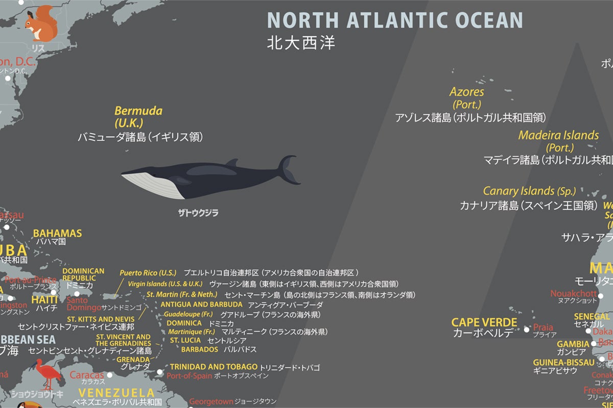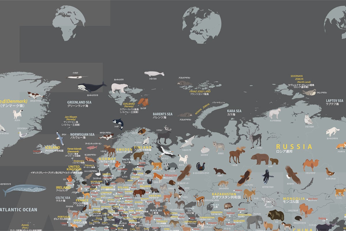 Q :「どうぶつせかいちず」と「インテリアのための世界地図」の違いは動物がいるか、いないかだけですか?