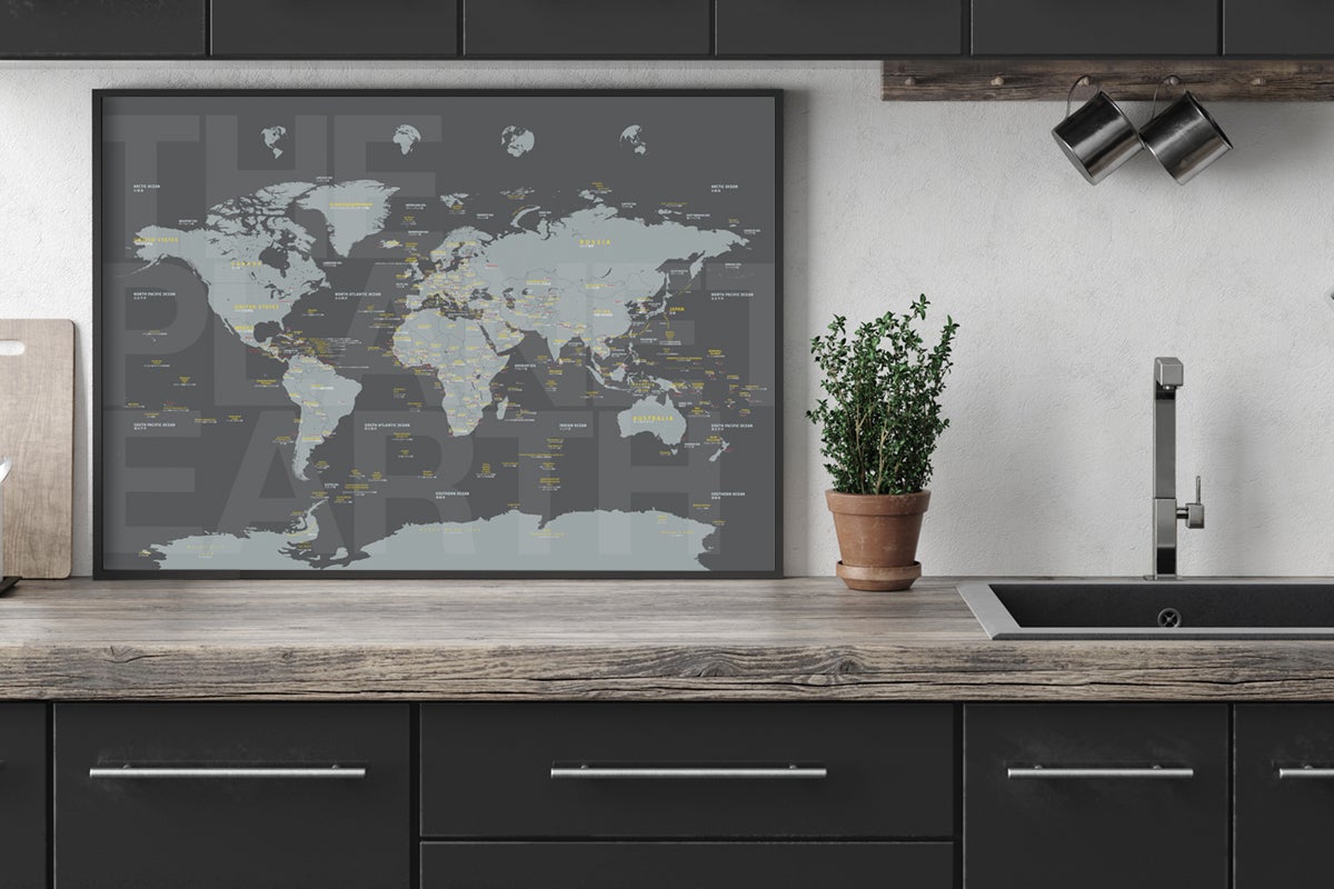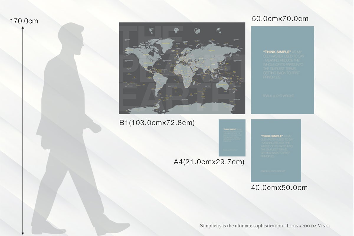 詳細な地図としての役割に加えて、大胆なグラフィックで「地球」を感じることができる、インテリアのためのデザインポスターとしてもおたのしみください。