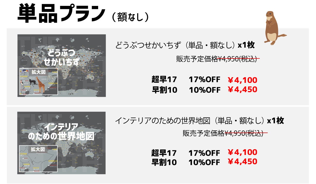 お得なセットでの購入プランもございます。まずは「どうぶつせかいちず」の詳細からご案内いたしますので、じっくりご検討くださいませ。