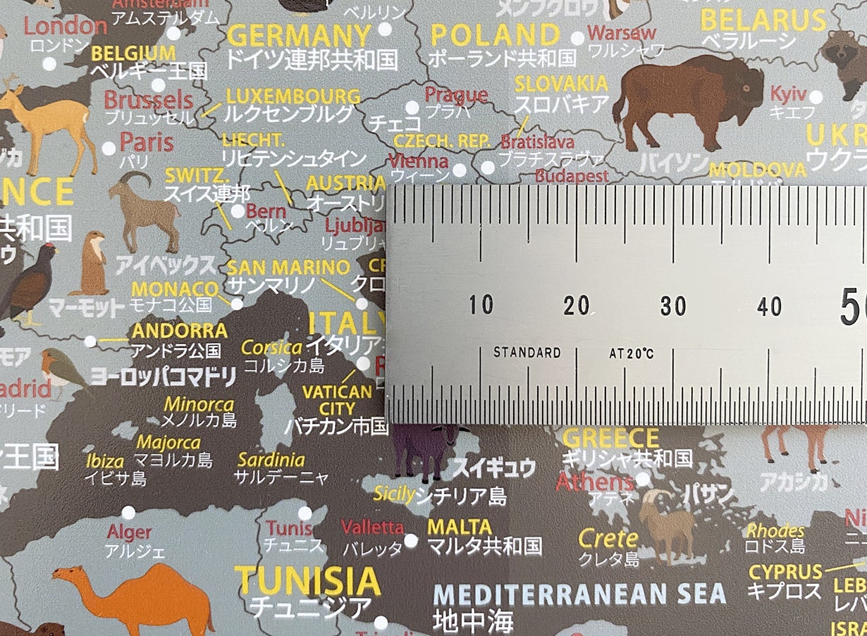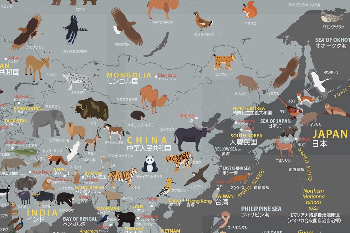 Q :「どうぶつせかいちず」と「インテリアのための世界地図」の違いは動物がいるか、いないかだけですか?