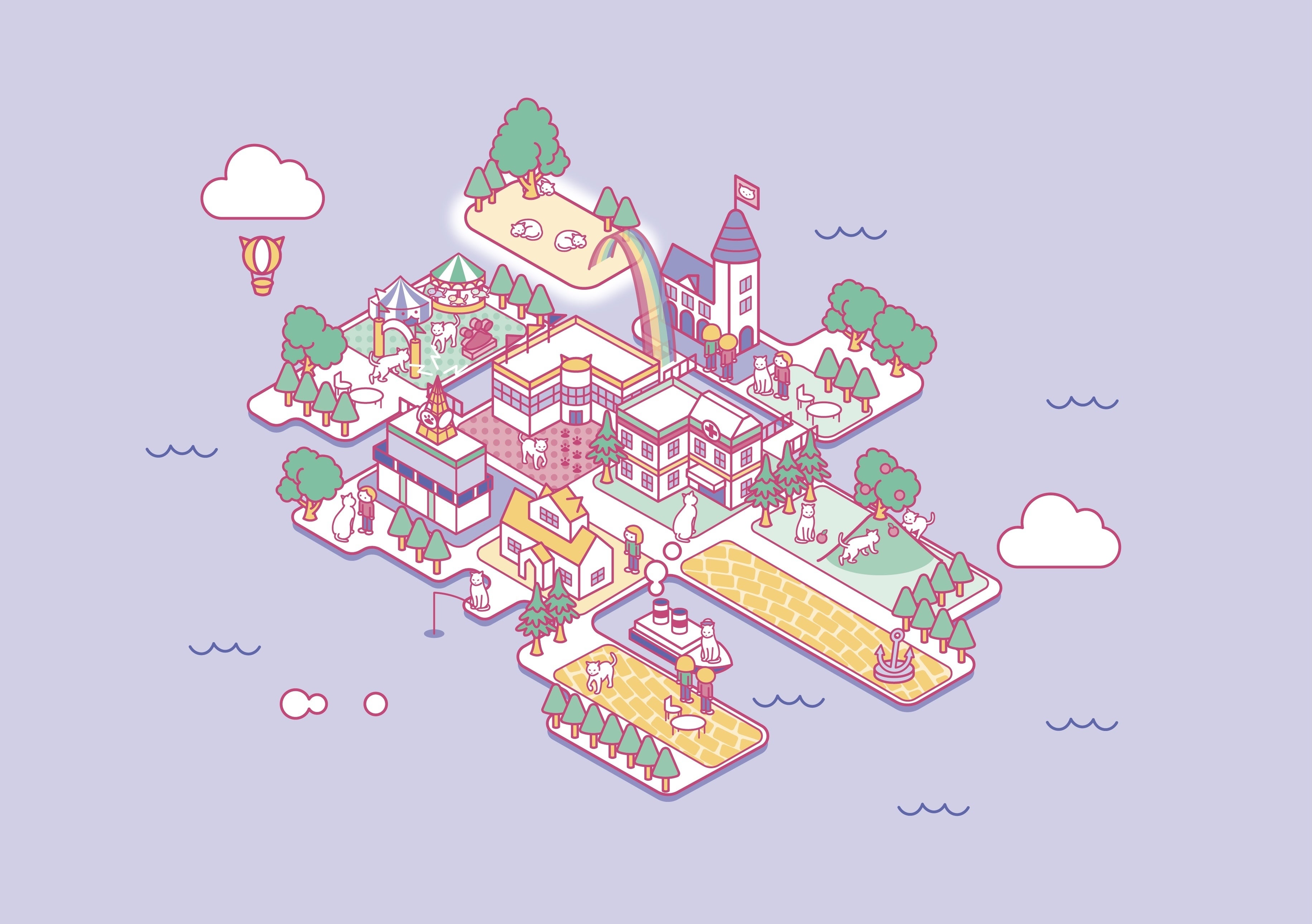 猫のご飯やグッズが買えるお店、猫の病院、猫達が集会を開くための公園など、タウンサービスは住民が増えるにつれ拡充していく予定です。