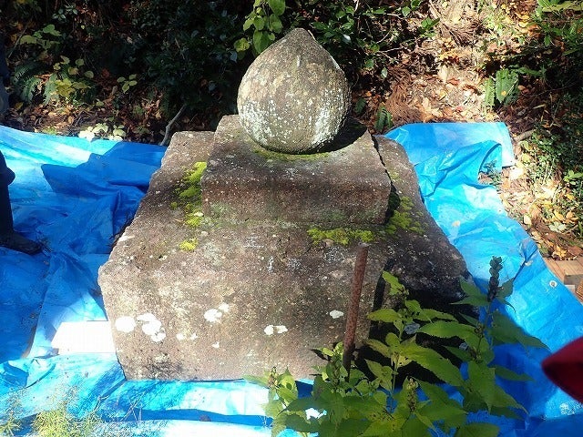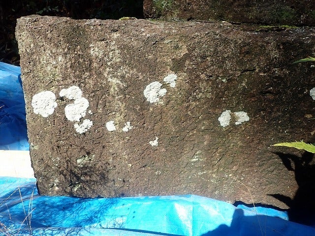 宝珠の側面には人名が列記されているはずですが、バクテリアと地衣類が全面に発生しているため、現状ではよくわかりません。