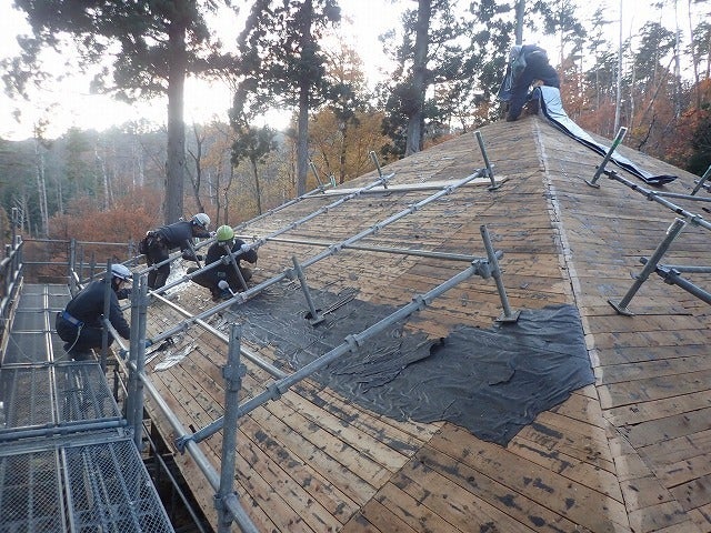 銅板瓦の内側からは防水シートが敷いてあります。