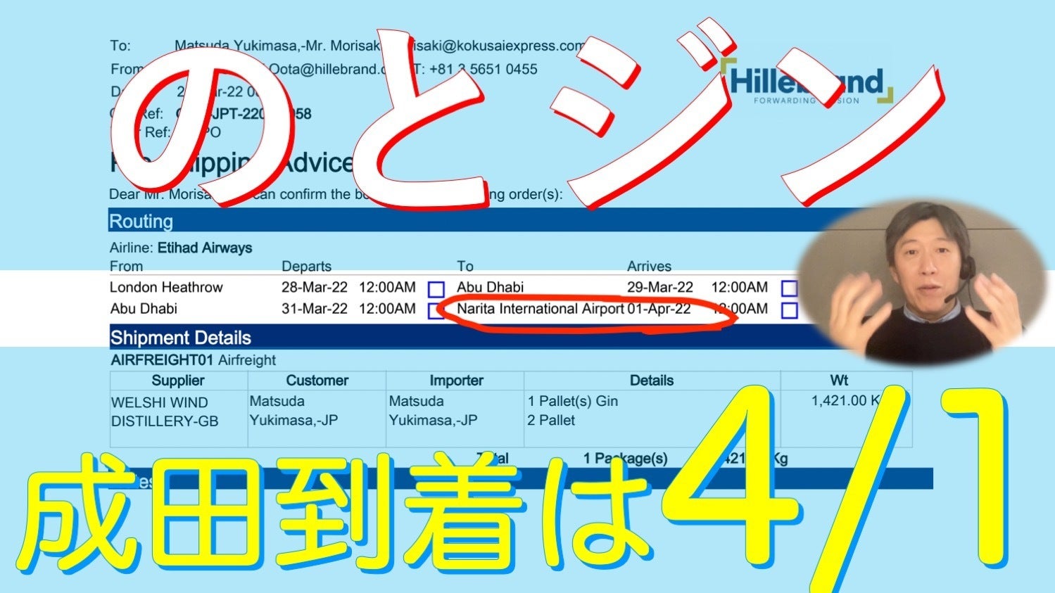 おはようございます、プロジェクトオーナーの松田です。今週金曜日の朝、日本に向けた出荷の飛行機が確保できたと連絡がありました。成田到着が4/1の予定です。