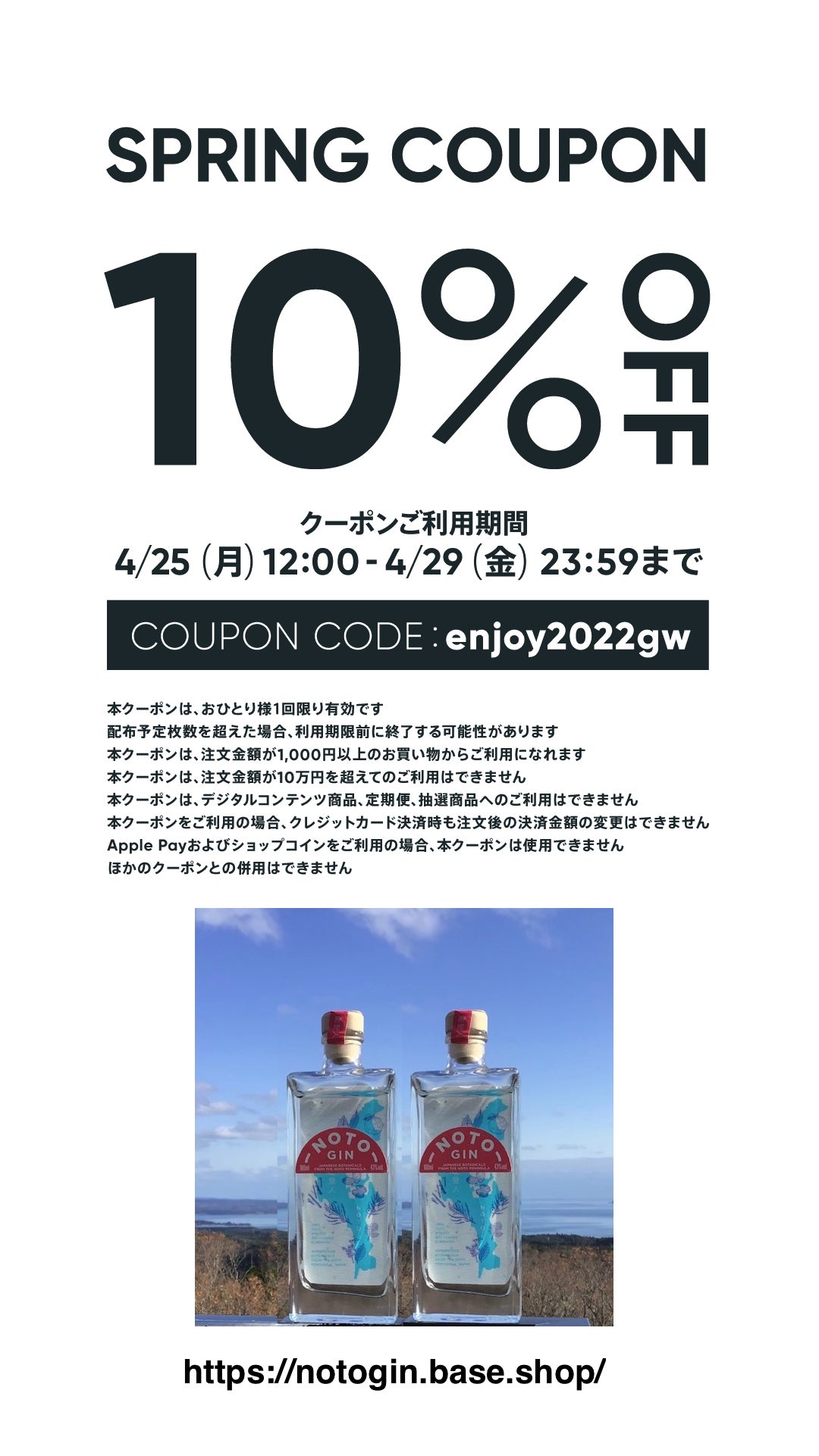 BASEのとジンオンラインショップでは、今週1,000円以上のご利用で、10%オフになるクーポンコードをお使いいただけます。