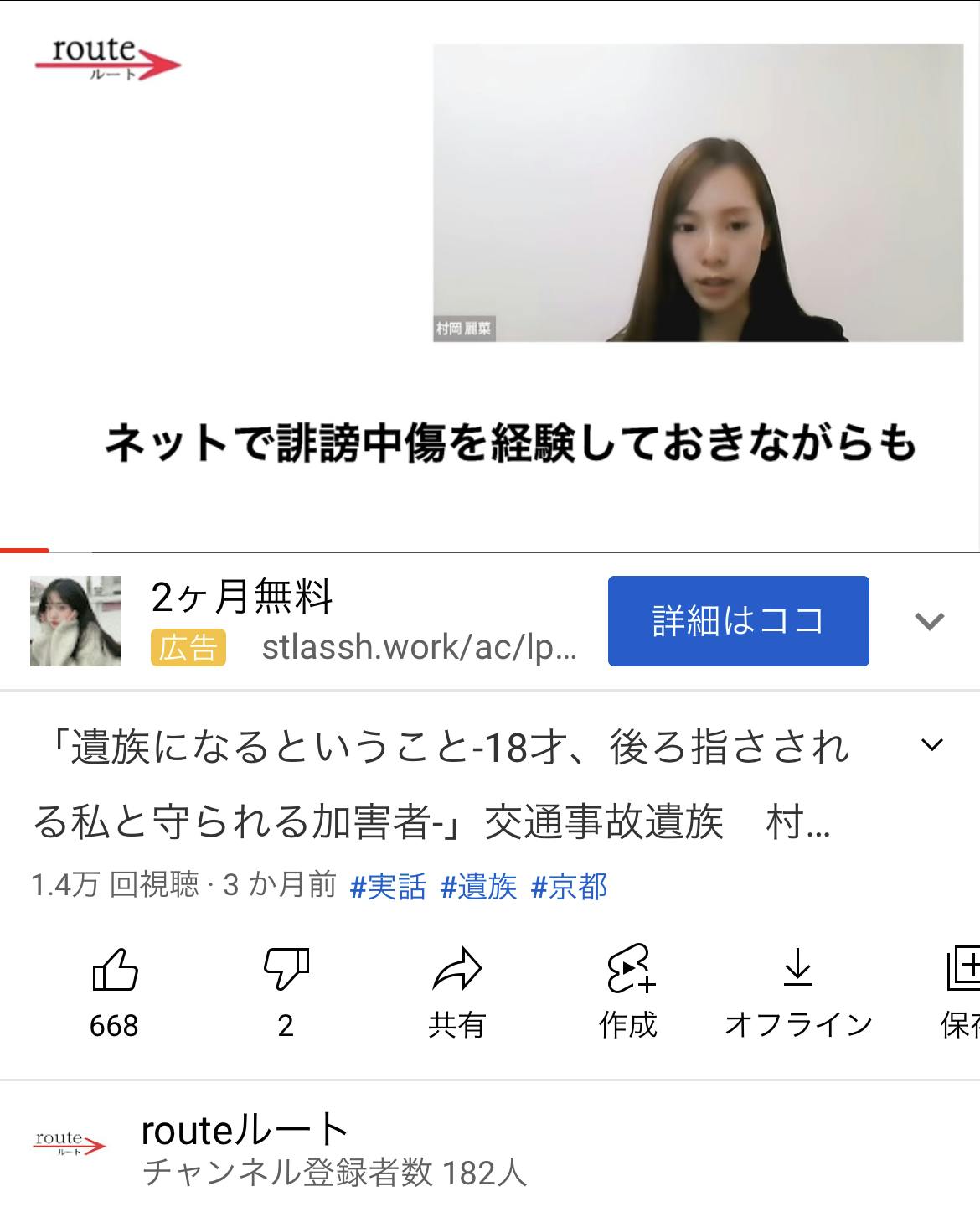 交通事故遺族団体「route→ルート」の代表として活動させていただいております。村岡麗菜と申します。