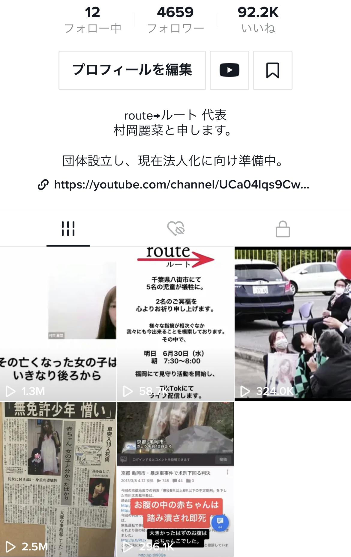 交通事故遺族団体「route→ルート」の代表として活動させていただいております村岡麗菜と申します。 企業様や公立高校などで講演やYouTube、TikTokへ動画投稿など幅広い年齢層の方達に事故防止の意識を高めてもらえるよう取り組んでおります。