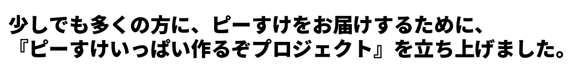 2023/03/15 22:54こちらの活動報告は支援者限定の公開です。ピーすけいっぱい作るぞプロジェクト通信 Vol.4