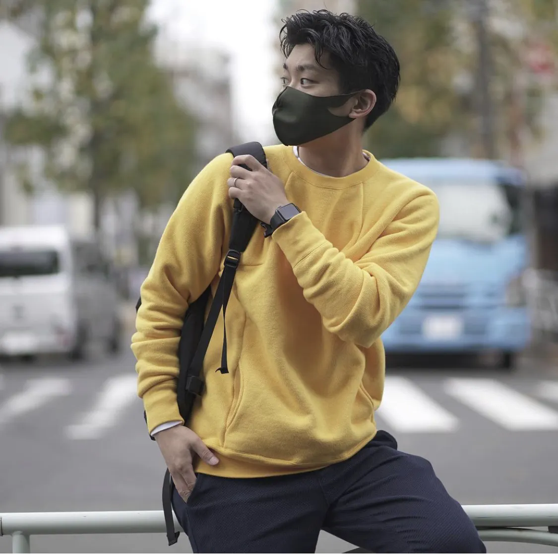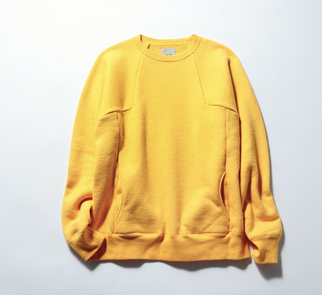 イエローのスウェットは袖付けがラグラン使用となっています。これは、生地の切り替えが、ネックから脇にかけて斜めに曲線を描きながら入っているのが特徴です。
