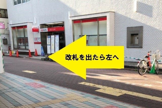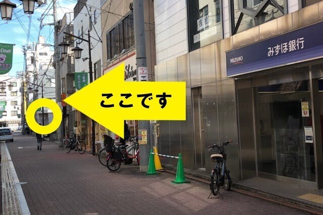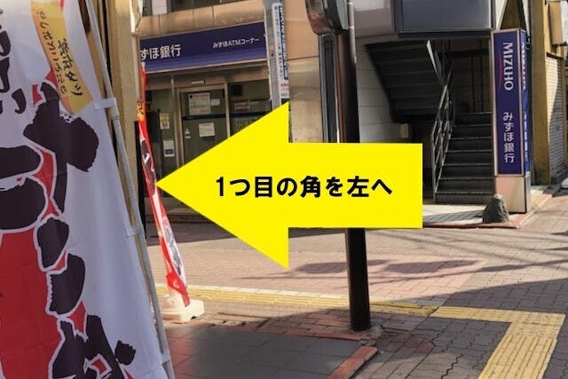 みずほ銀行の手前(1つ目の角)を左に曲がって、そのまま真っすぐに進みます。