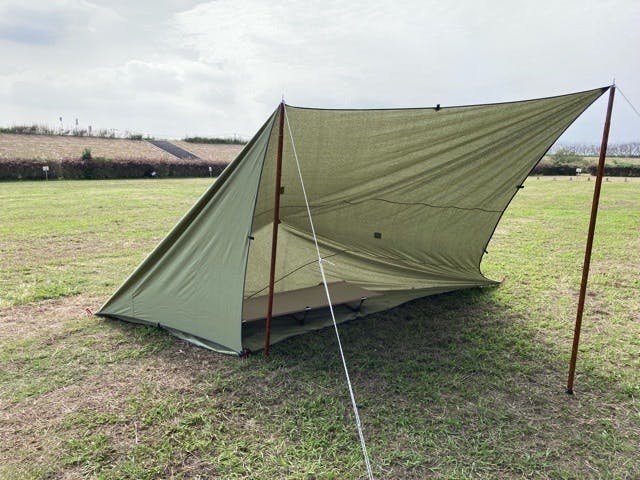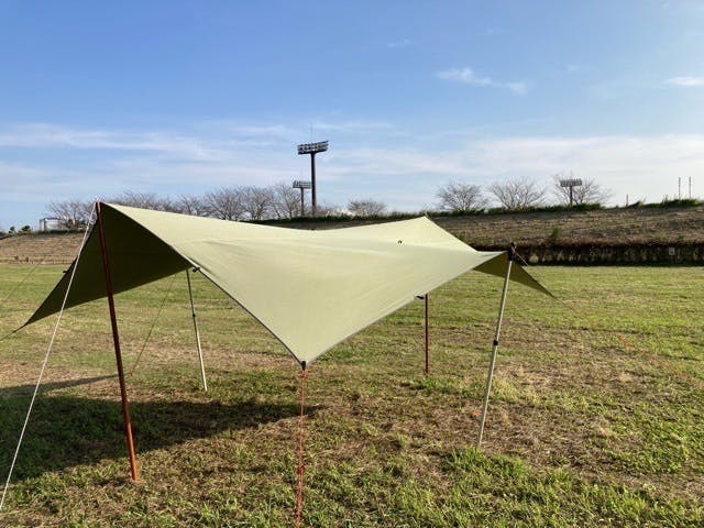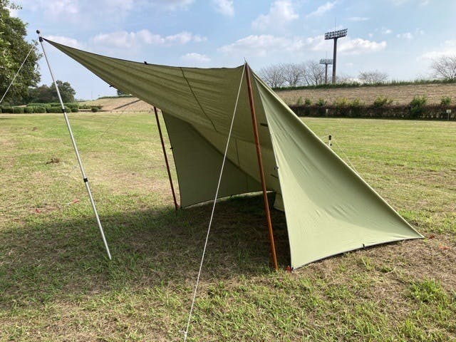 年間50泊前後のソロキャンプをしていて夏はハンモック泊、春、秋にはタープ泊、冬はテントにストーブでキャンプをしていて焚火に強く遮光性が高く年間使用できるタープを自分で探しましたが使い易いサイズ及び形状、ループ数のものが無く新規に開発を始めました。