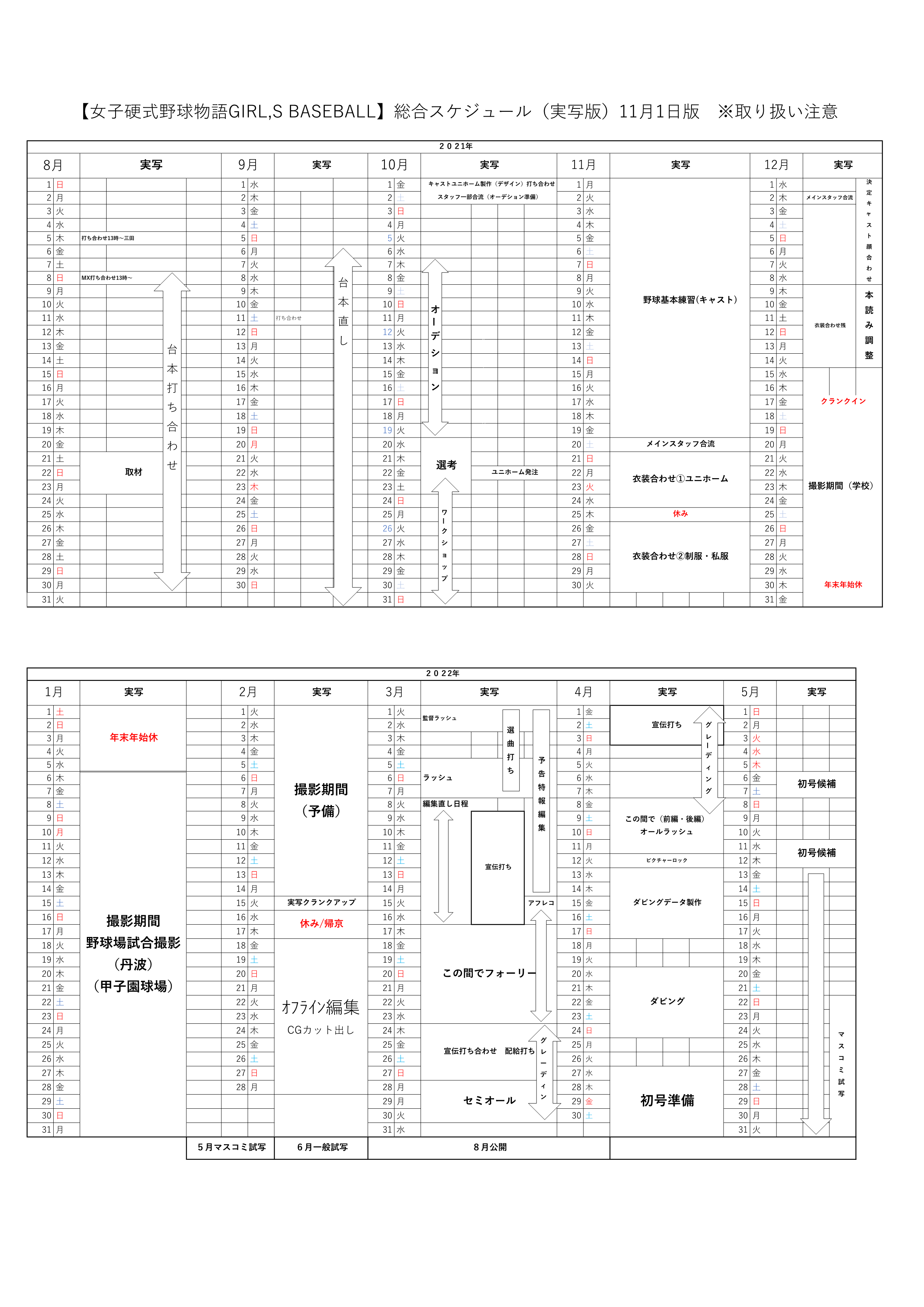 2021年11月1日(キャスト野球練習)及び(衣装合わせ)