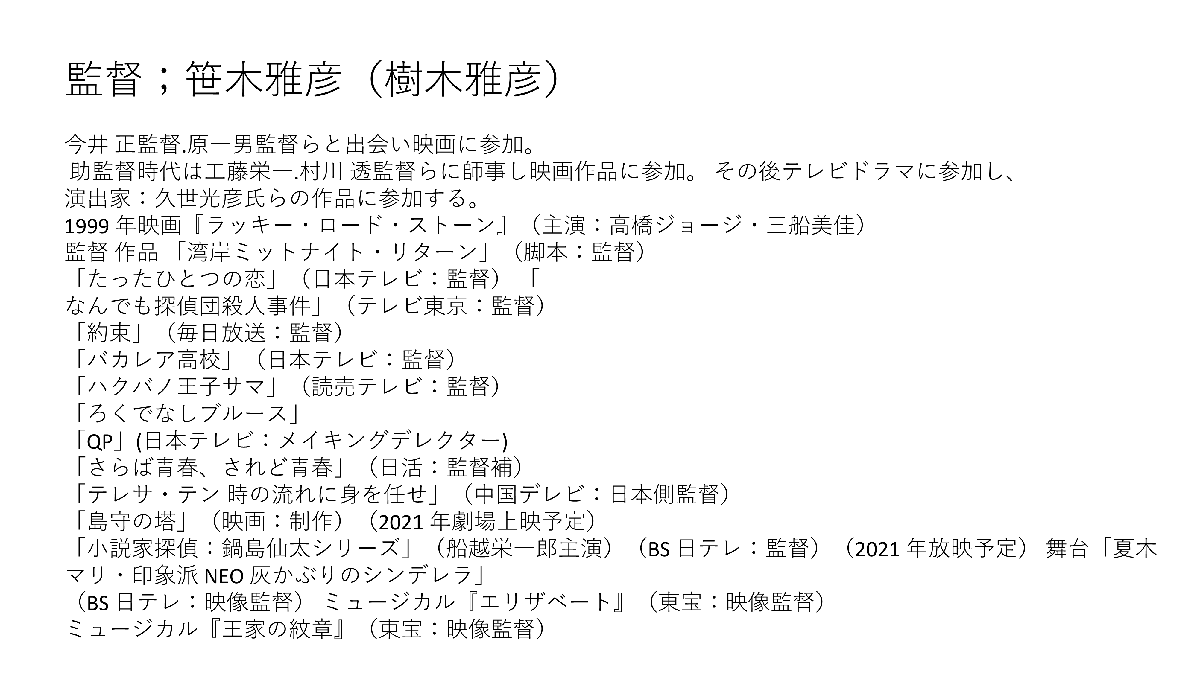 2022年3月15日クランクアップ(予定)天候により予備日を設けます
