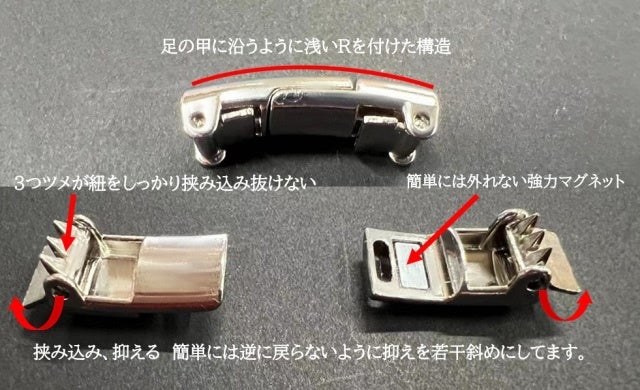 ③調整しましたら、ツメを折り返し、靴紐を挟み込んで下さい。
