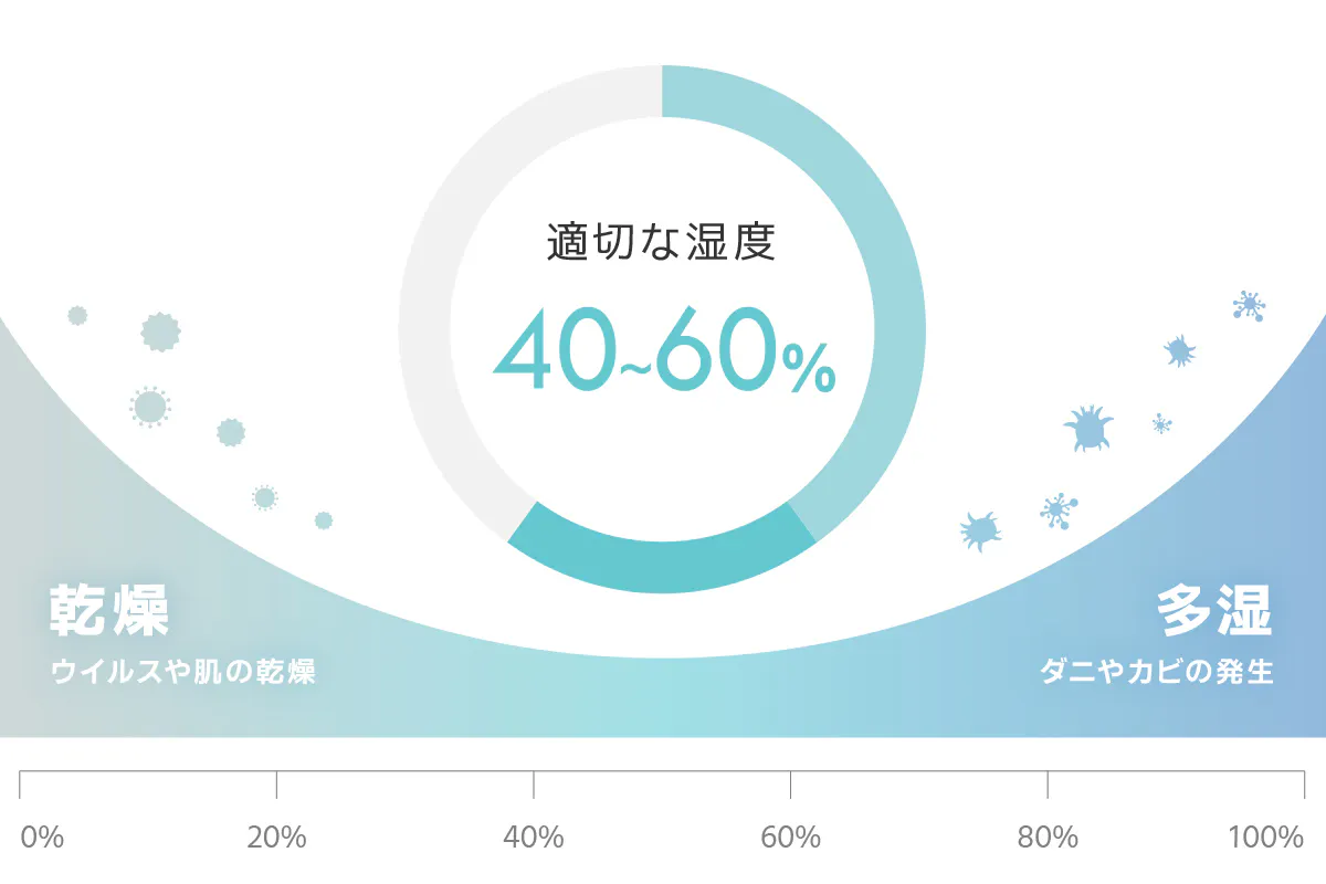 適切な湿度は40~60%が目安とされています。