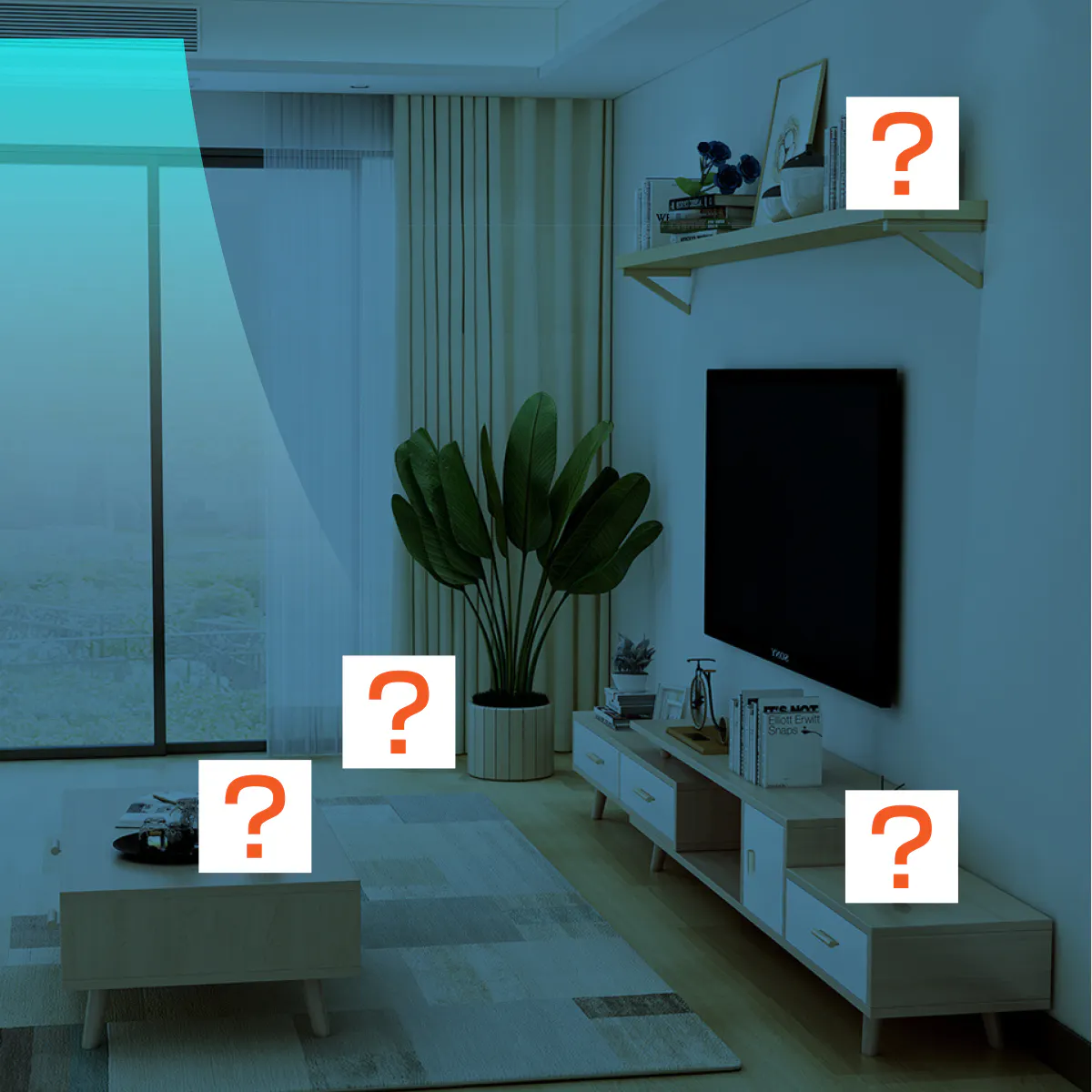 たとえば、加湿器は部屋の中央に置くと部屋全体にうるおった空気が広がるので効率的。