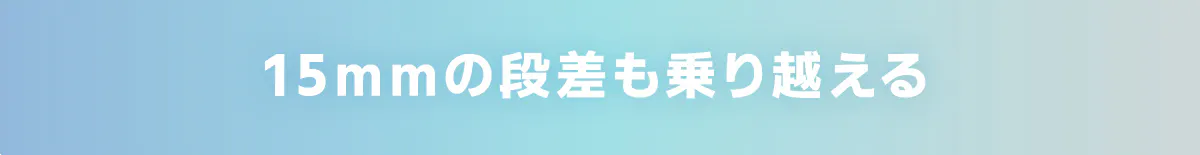 15mmまでの段差を乗り越えることができ、低い敷居にも立ち往生することなく