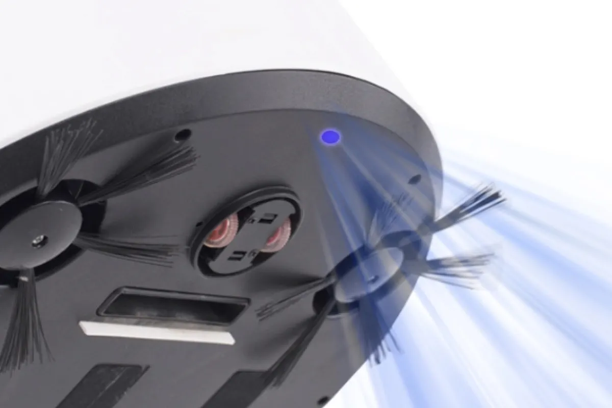 ロボットが清掃した部分は、UV(紫外線)ライトが搭載されており、床に残留している