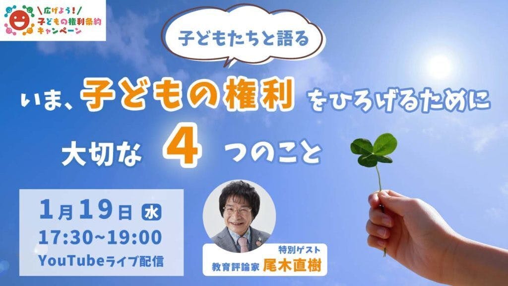 広げよう!子どもの権利条約キャンペーンでは、1月19日に「子どもの権利の大切さ」について理解を深め、「子どもの権利の実現」のために、「大切な4つのこと」について考えるトークイベントを開催します!
