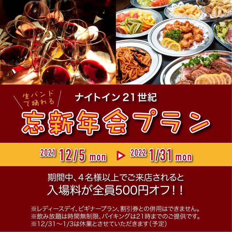 4名様以上でご来店いただくと入場料が500円オフとなる