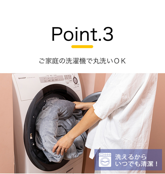 汚れやニオイが気になったら洗濯機でジャブジャブ洗っていただけますので布団カバーを付ける必要もございません!