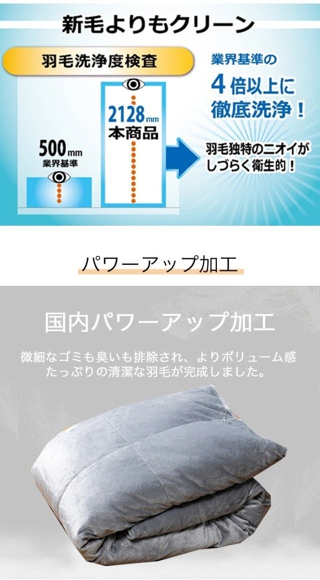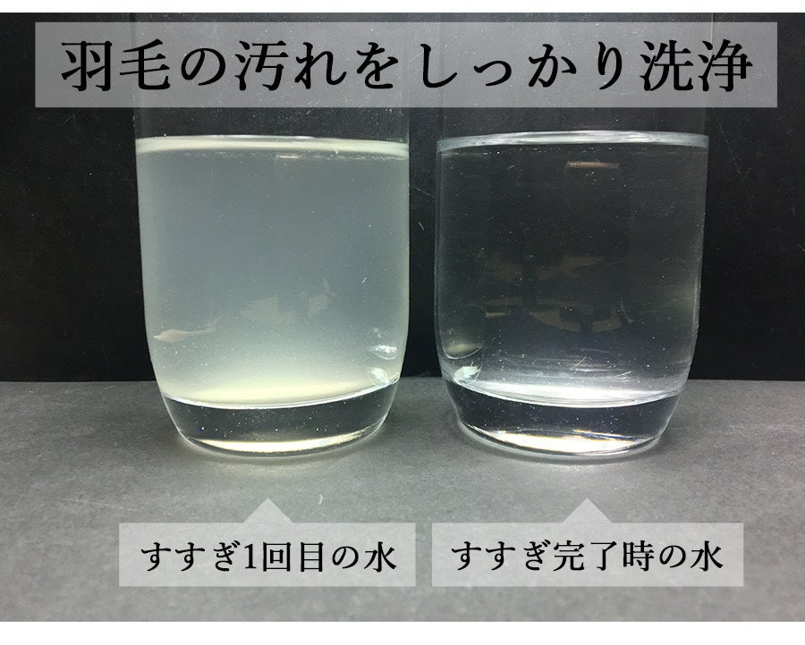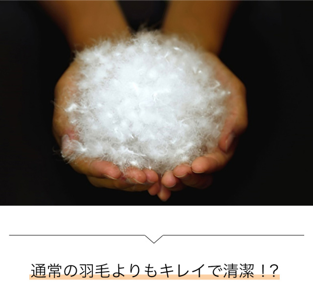 「REFINE DOWN」は通常の羽毛業界基準の4倍以上に徹底洗浄することで、ホコリ、アカ、塵なども通常の新毛の羽毛以上に取り除かれます。羽毛独特のニオイも発生しづらく非常に衛生的です。