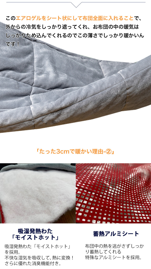 たった3cmの厚みでありながら1枚でここまでの暖かさを実現しました!