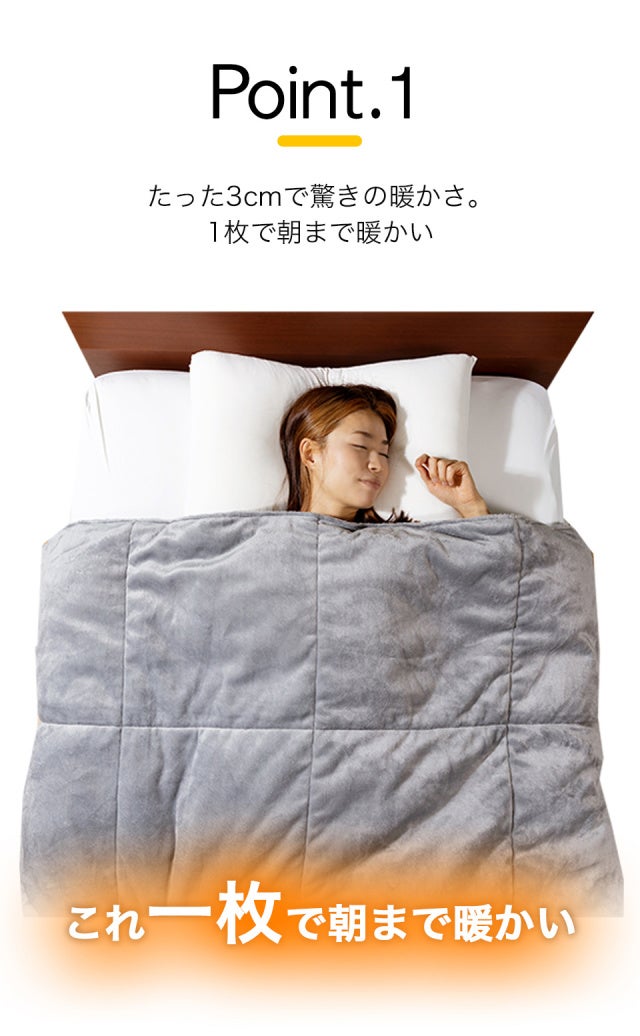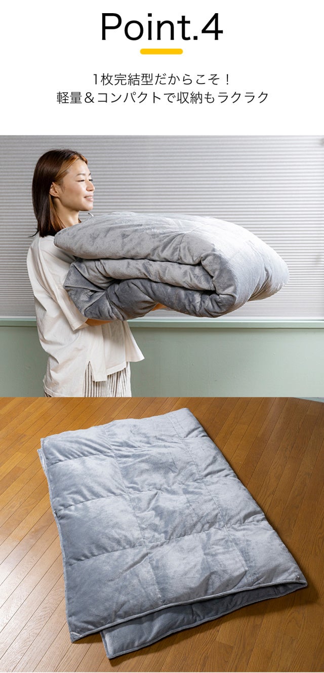 1枚で完結するからこそ、毛布がずれたりする煩わしさもございません!