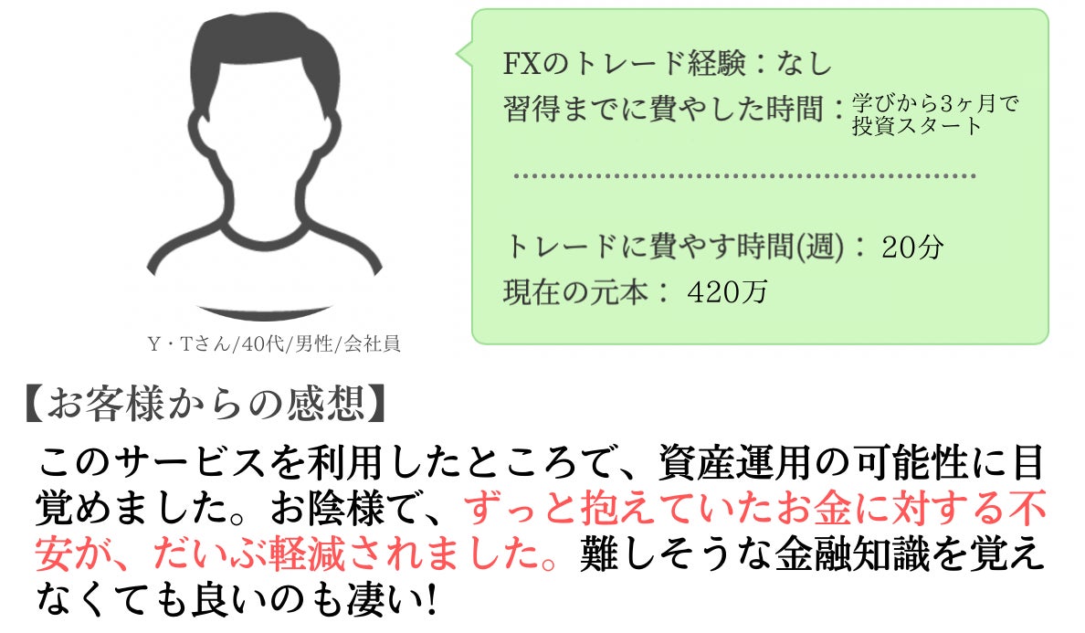 私が開発した再現性が高いFXトレードのロジックは、自信を持って多くの人におすすめできるものです。しかし、これまで投資をしたことがない方、リスクが高いのではと不安な方には、ハードルが高いことも認識しています。