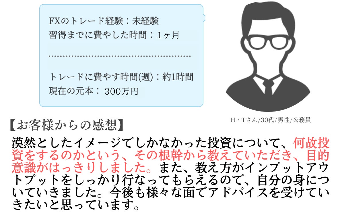 以下の方々は、私の「FXトレードロジック」のレッスンを受け、既に資産運用を行っているお客様です。