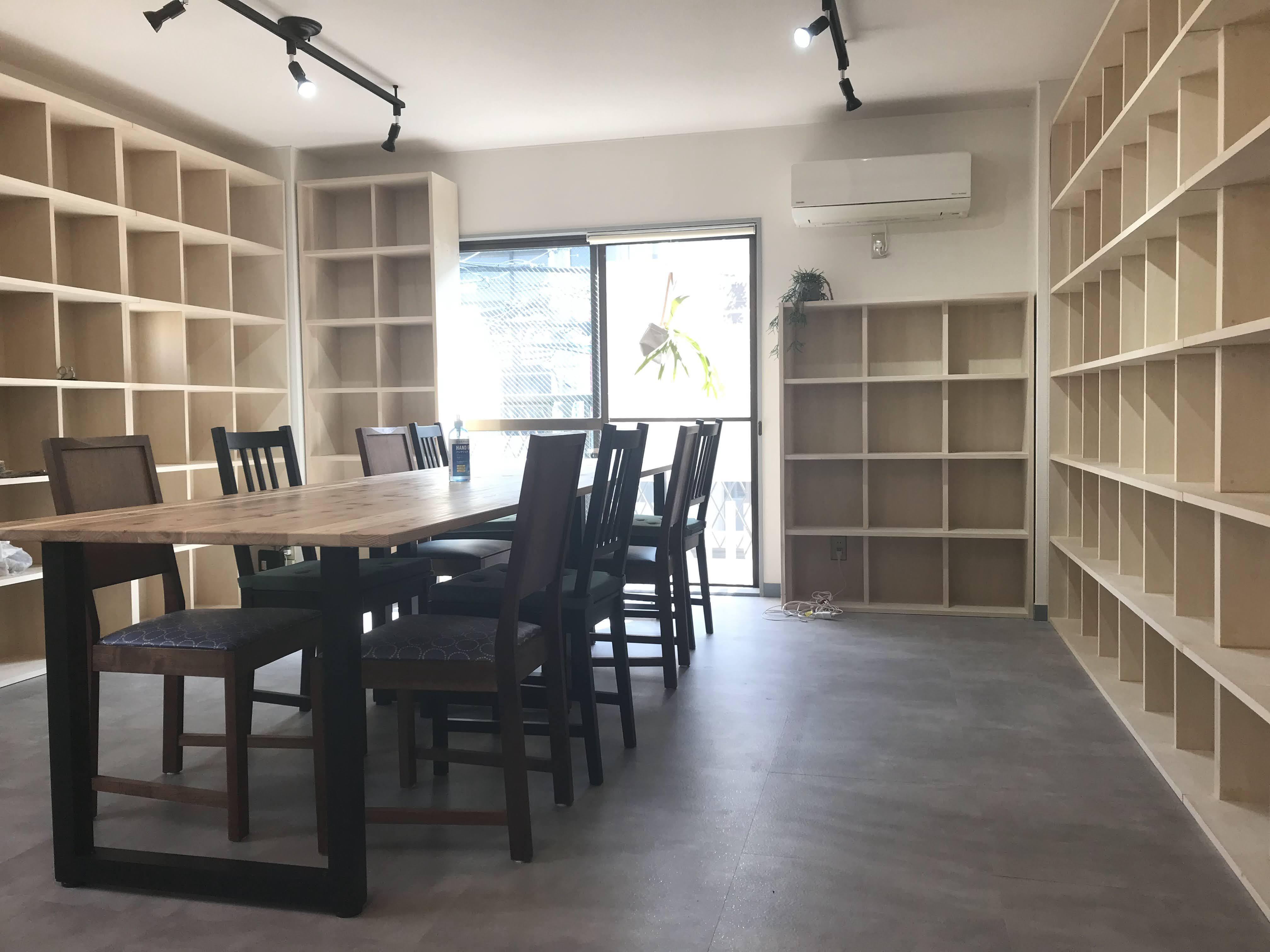 私たちは棚主さんの住居スペースをより快適な空間とするために、本棚、テーブルはオーダーメイド、照明、床材、ベランダのグリーンなどの準備を進めています。
