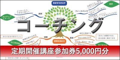 もしくは定期開催予定のNLP個育てコーチング講座(全4回19,800円)か個人カウンセリング(2時間10,000円)に5,000円分としてご使用できます。
